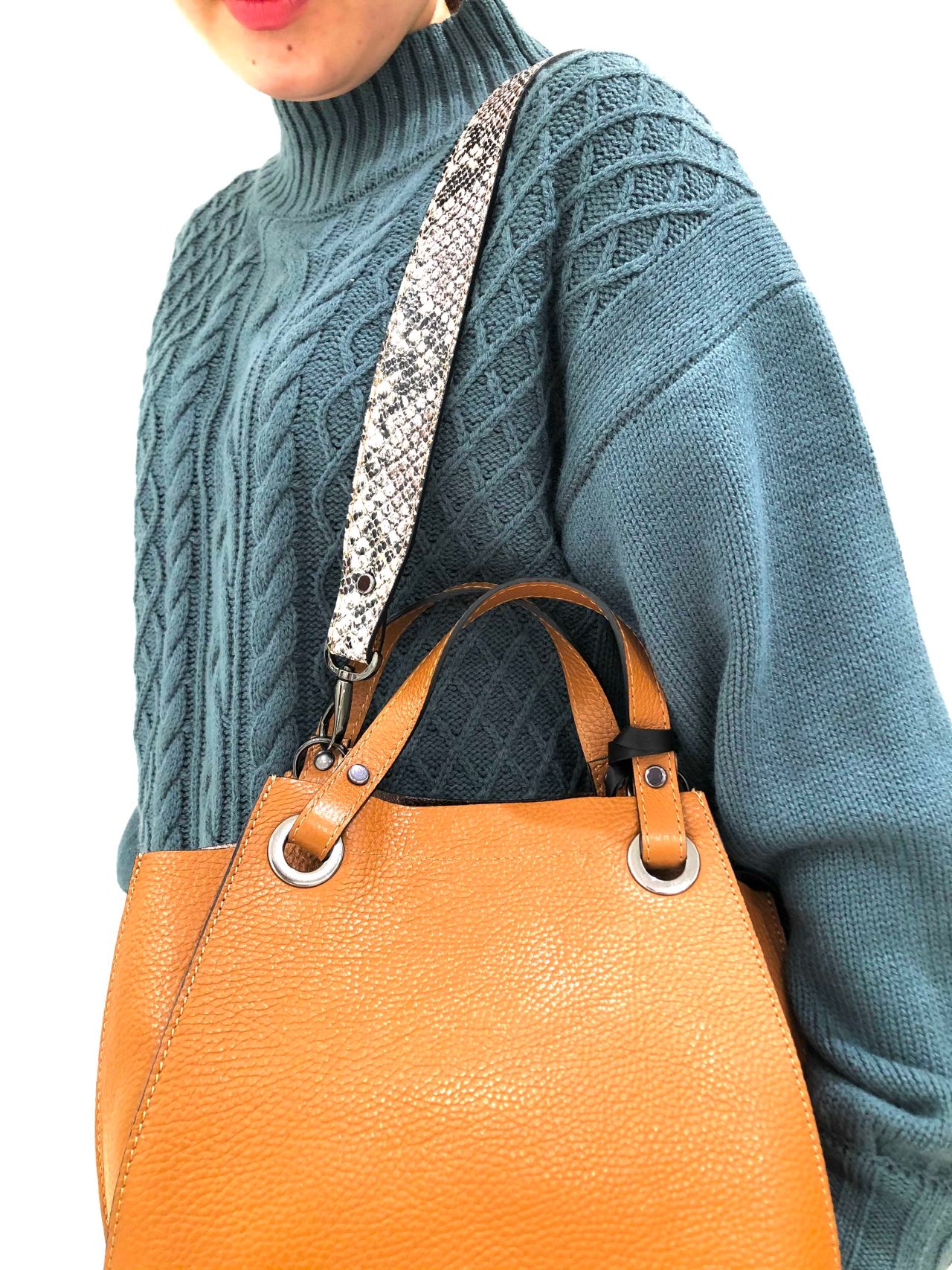 少し太めのショルダーがモードな雰囲気に仕上げてくれます。