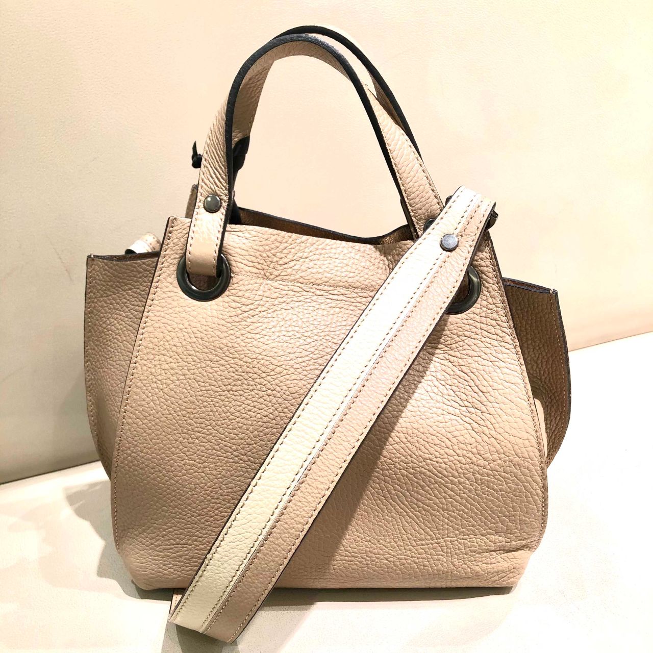 持ってもらったキャメル以外にとっても上品なグレージュもご用意してます!