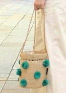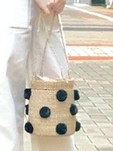 カラーのポンポンがアクセントの可愛いカゴバッグです。