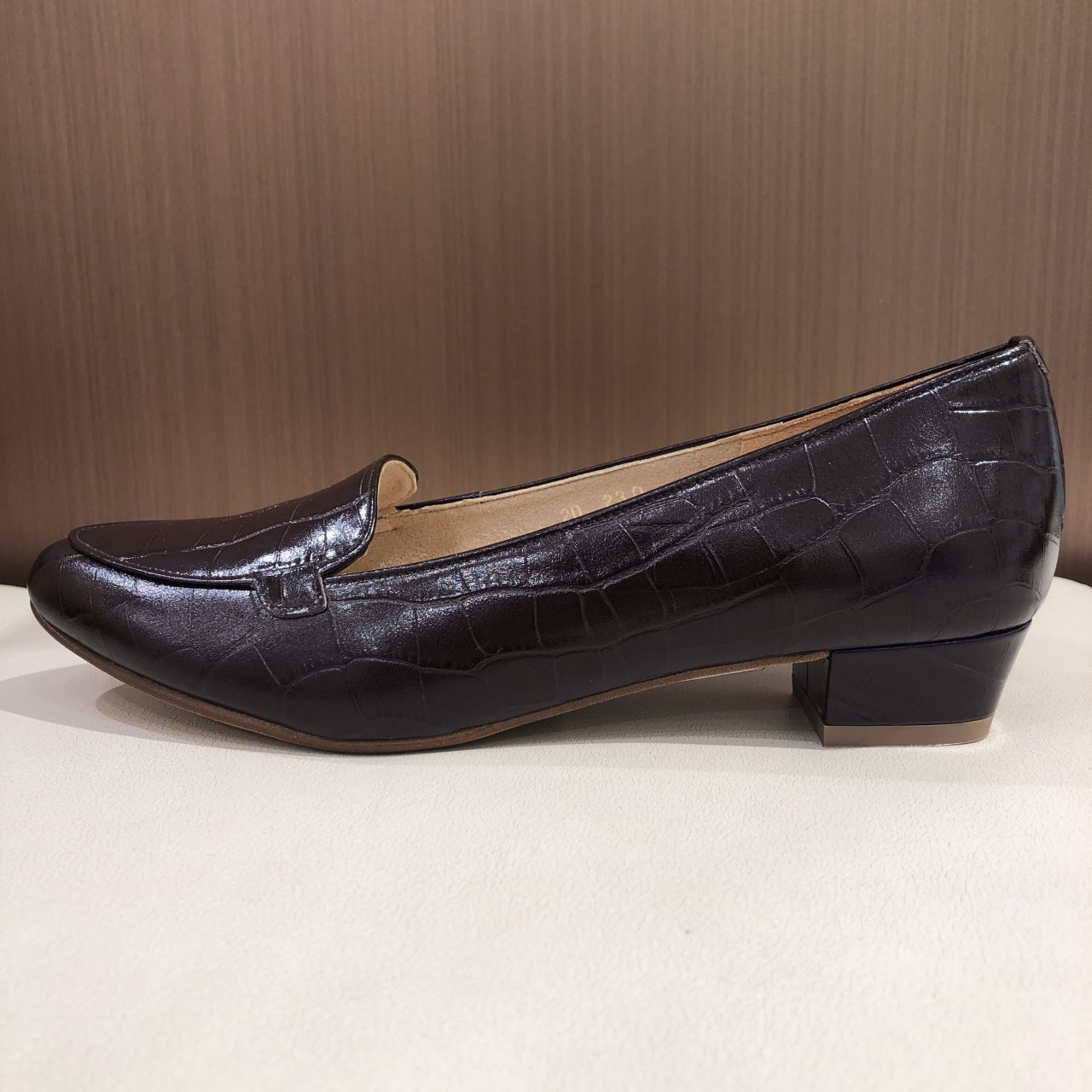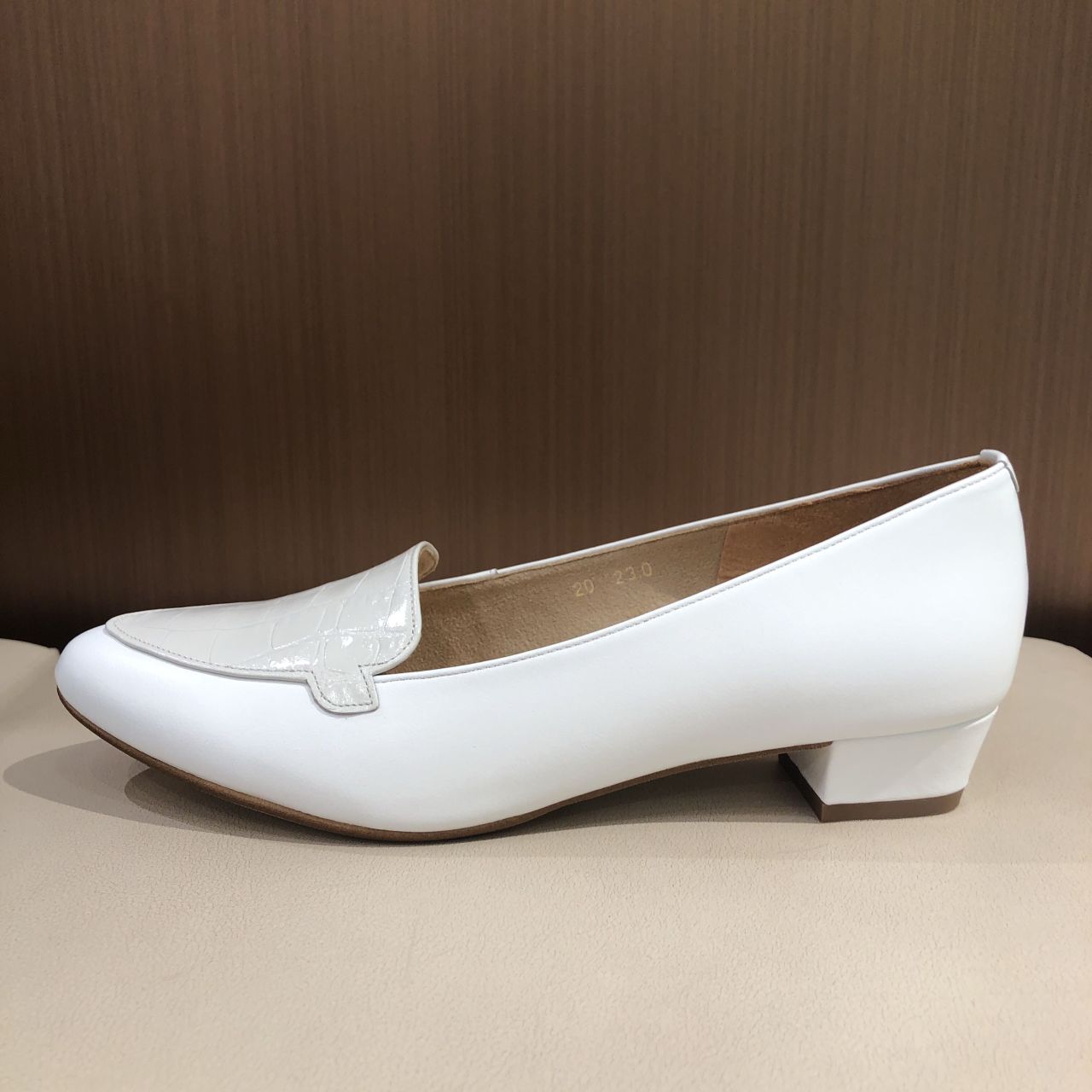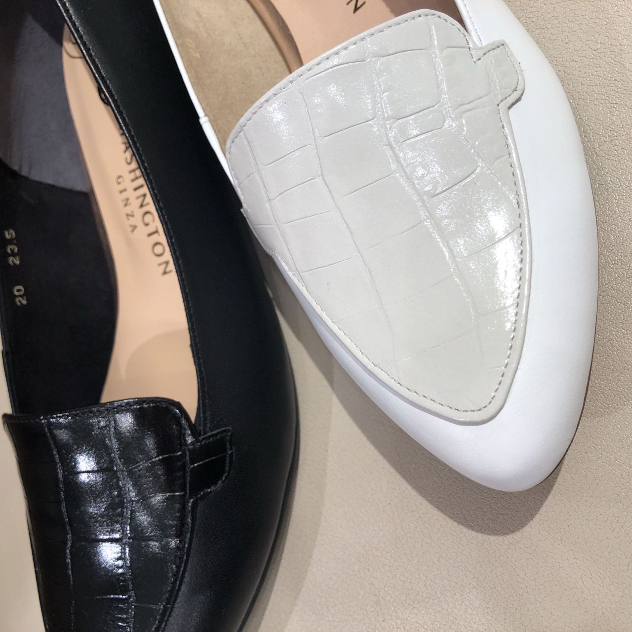 シックな表革とレトロな型押しのコンビがオシャレなホワイト、ブラック。
