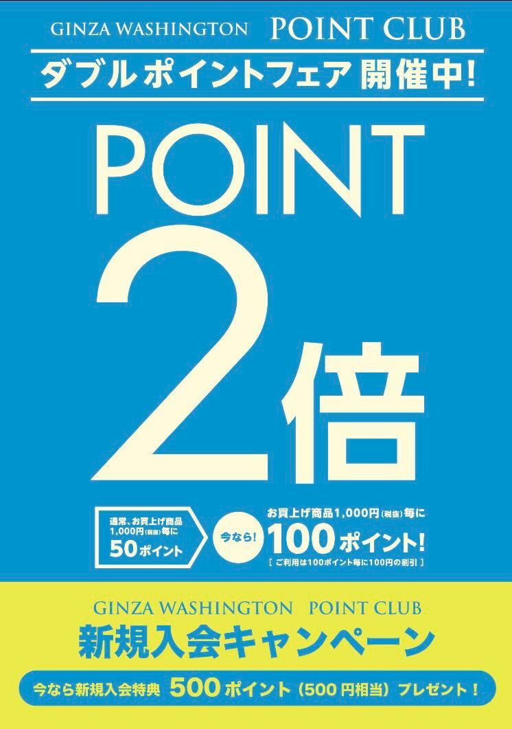 通常¥1.000(税抜)毎に50ポイントのところ、明日まで¥1.000(税抜)毎に100ポイント付きます!!