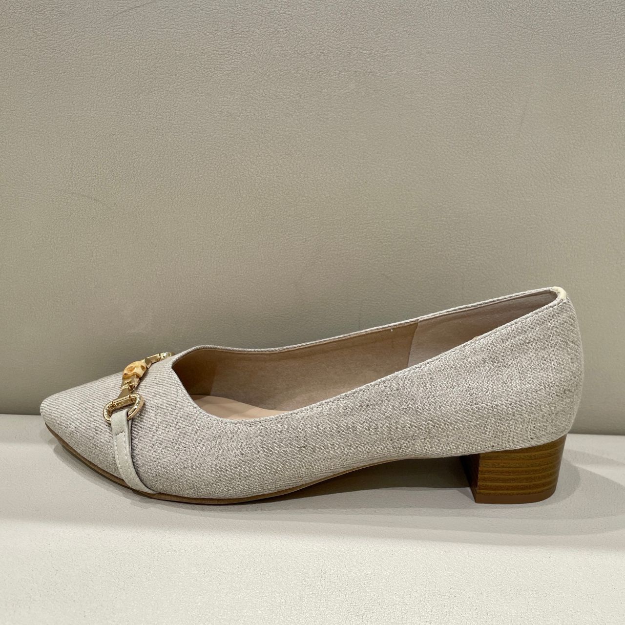 ヒールは3センチのスタックヒール