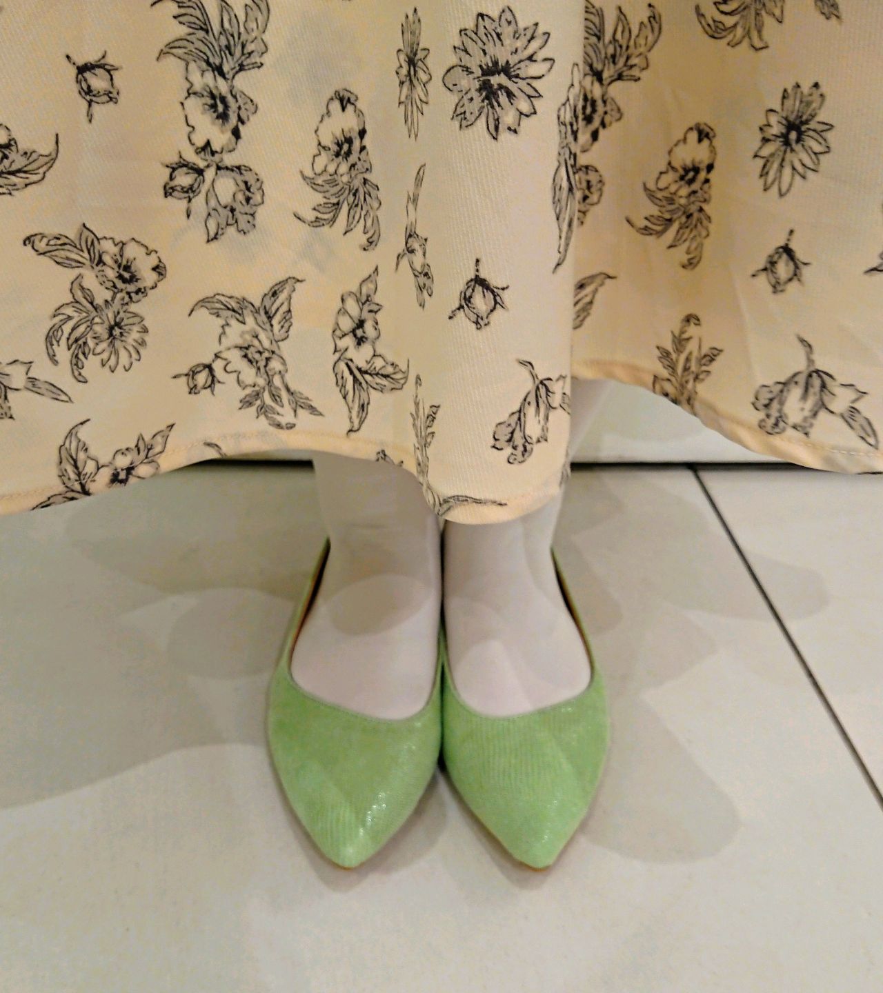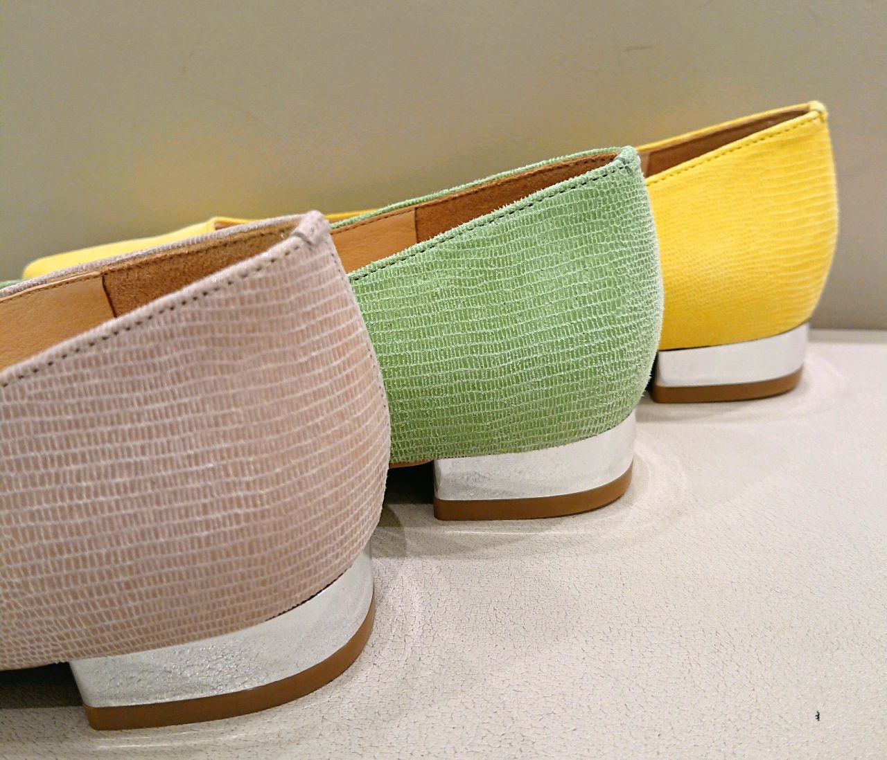 ミントグリーン&アシンメトリーカットはトレンド感あふれる今季らしい一足です☆
