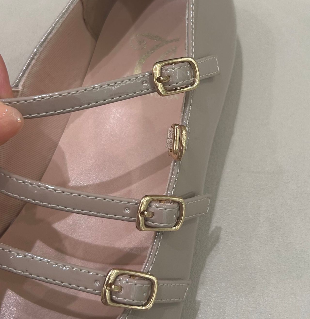 こちらのバレエシューズは3ラインのストラップが特徴的な一足です!