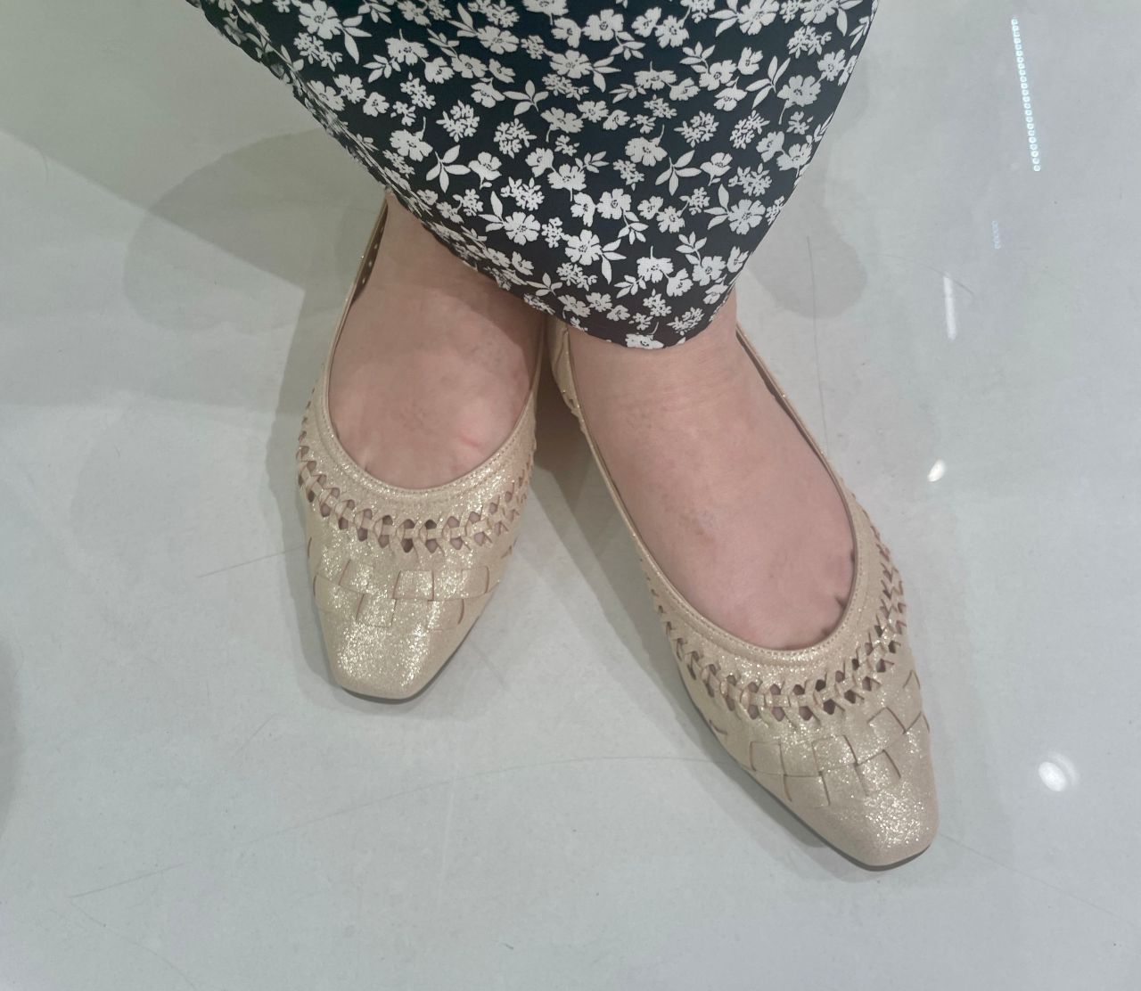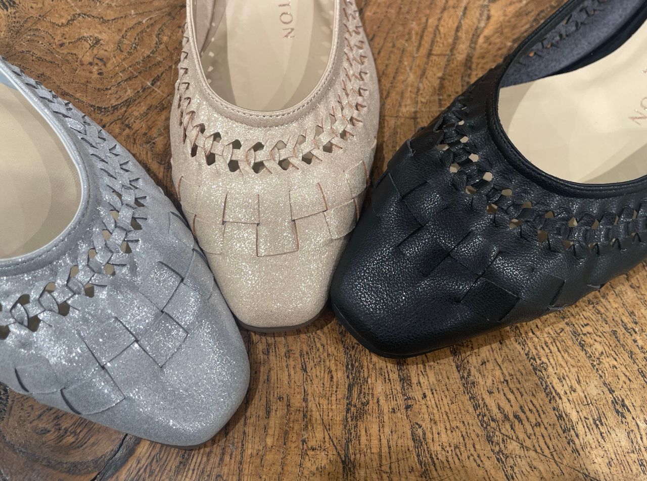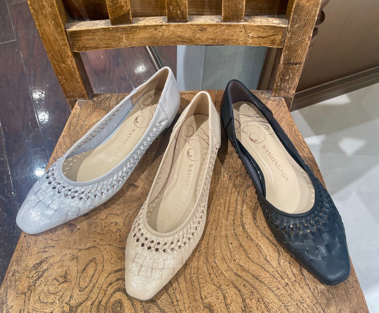 編み込みデザイン フラットパンプス
