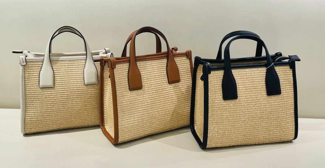 カゴ風の素材感をかっちりめのデザインに落とし込んだ2wayトートです。