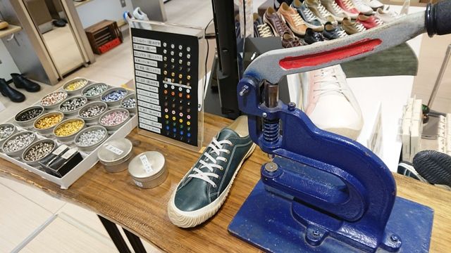 なにやら、大きな道具が置いてありますが、こちらは靴紐を通す穴に、