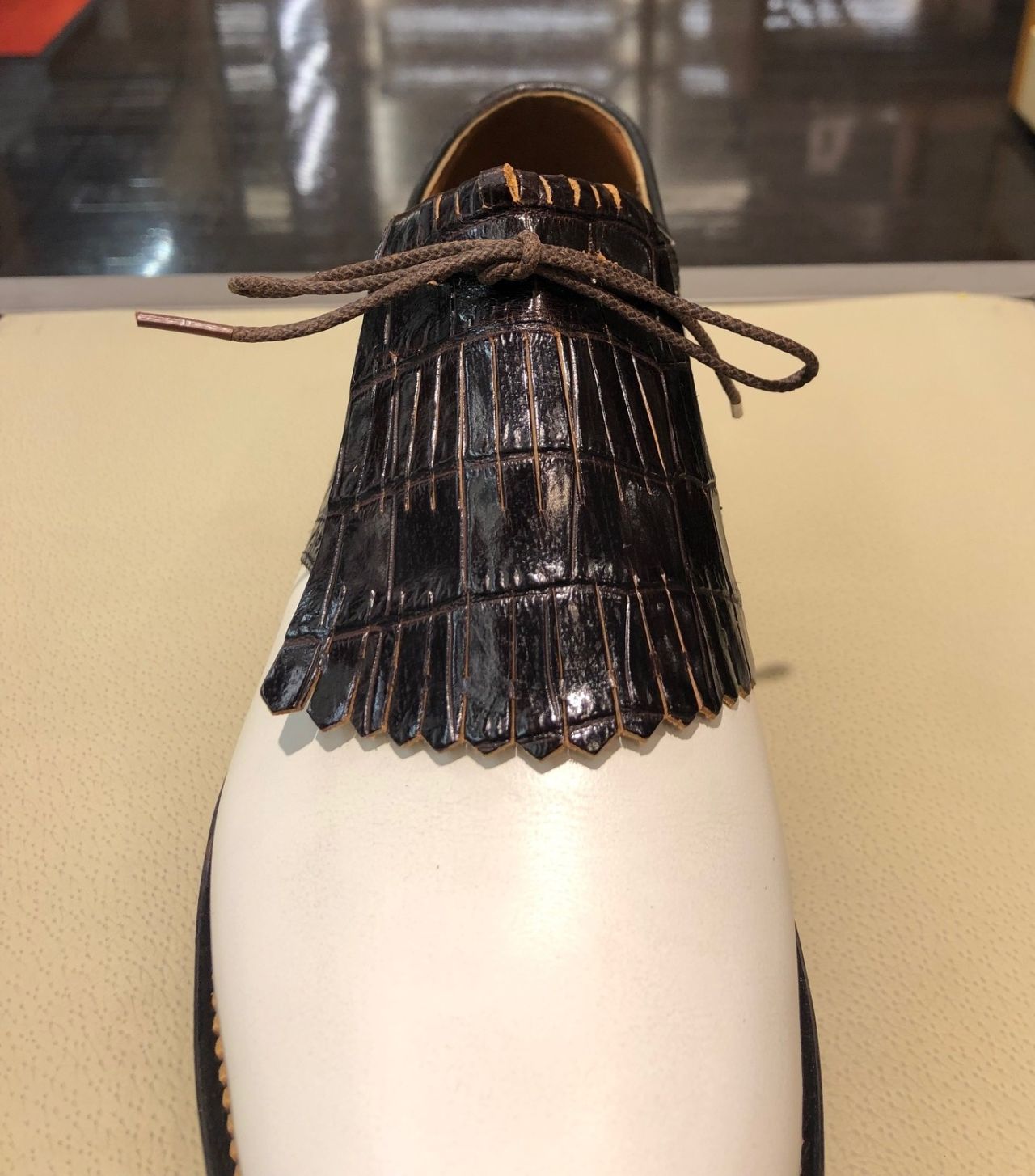 靴と同じ色でも出来ますし、色や素材を替えて