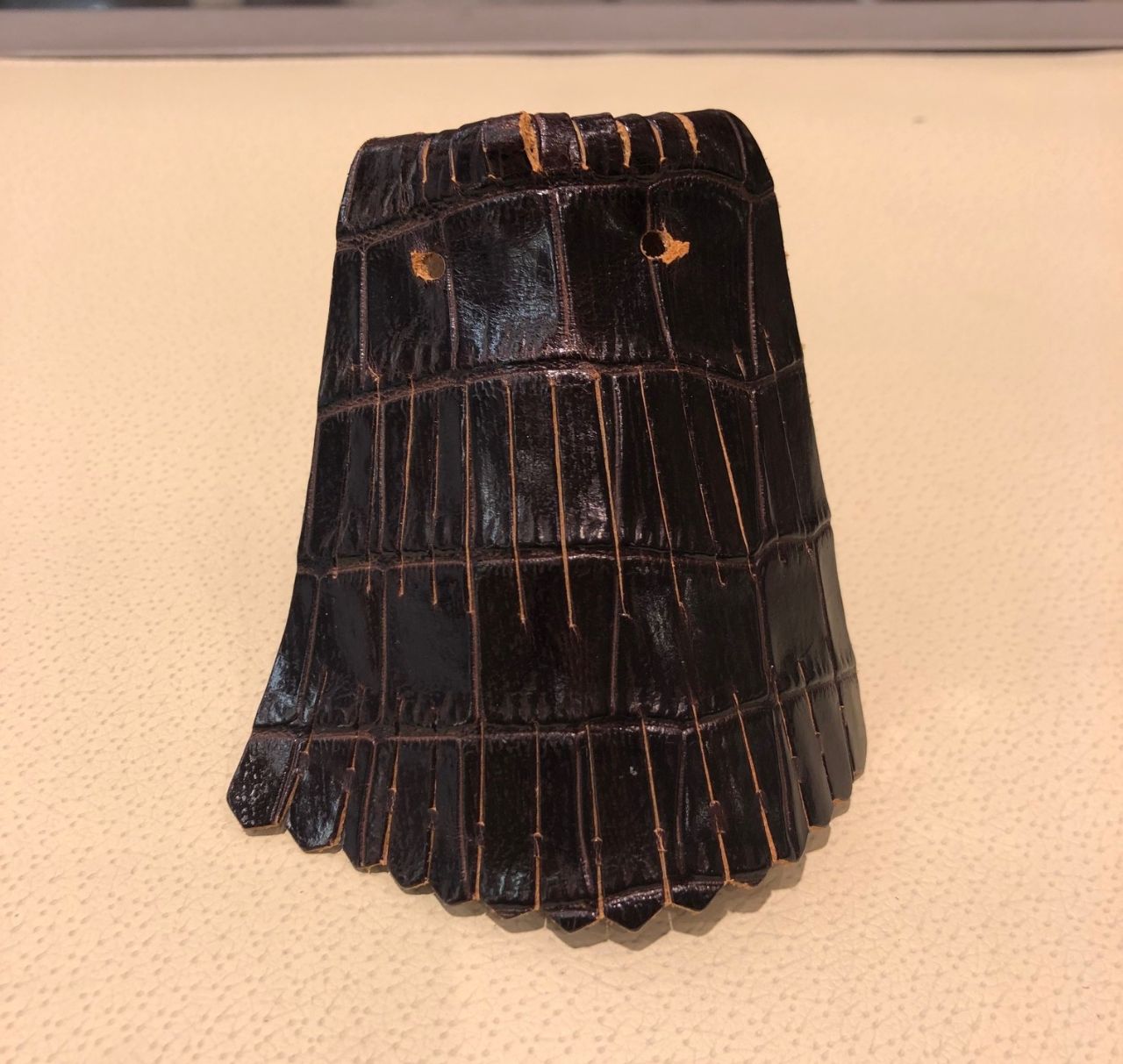 甲の部分に付けて、紐を通して固定します。