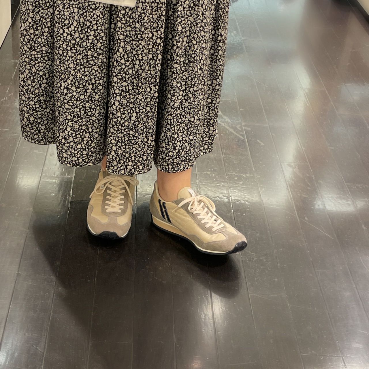 全体的に落ちついたカラーですが、濃紺のソールとサイドラインでお足下が締まって見えますね。