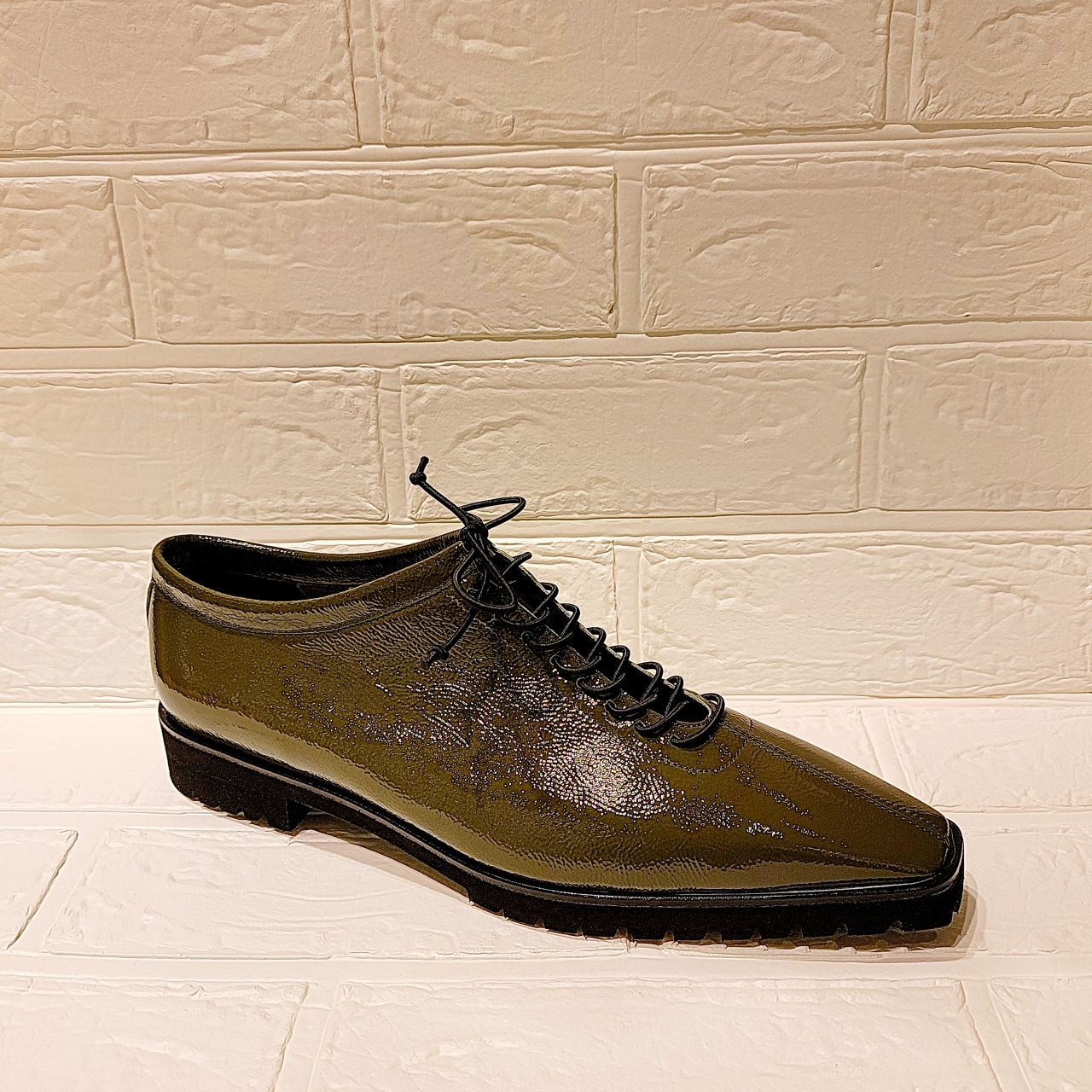 レースアップ部分にはタンがなく、肌見せで程よい抜け感もあり、ソックスコーデも楽しめる一足です。