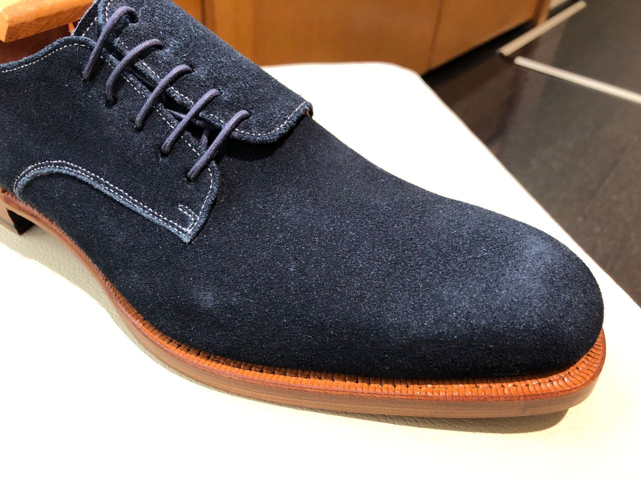国産のネイビースエードで作った靴です。