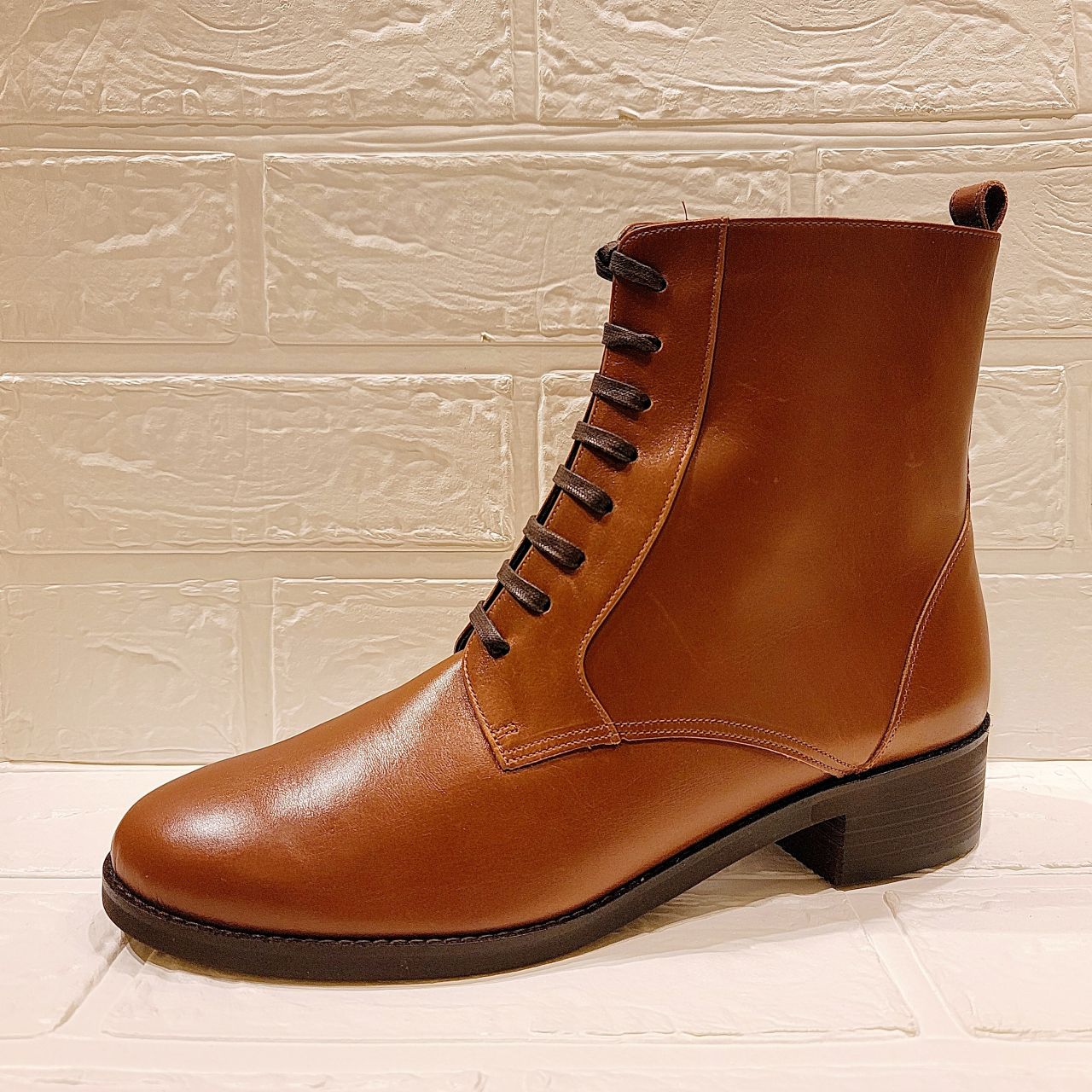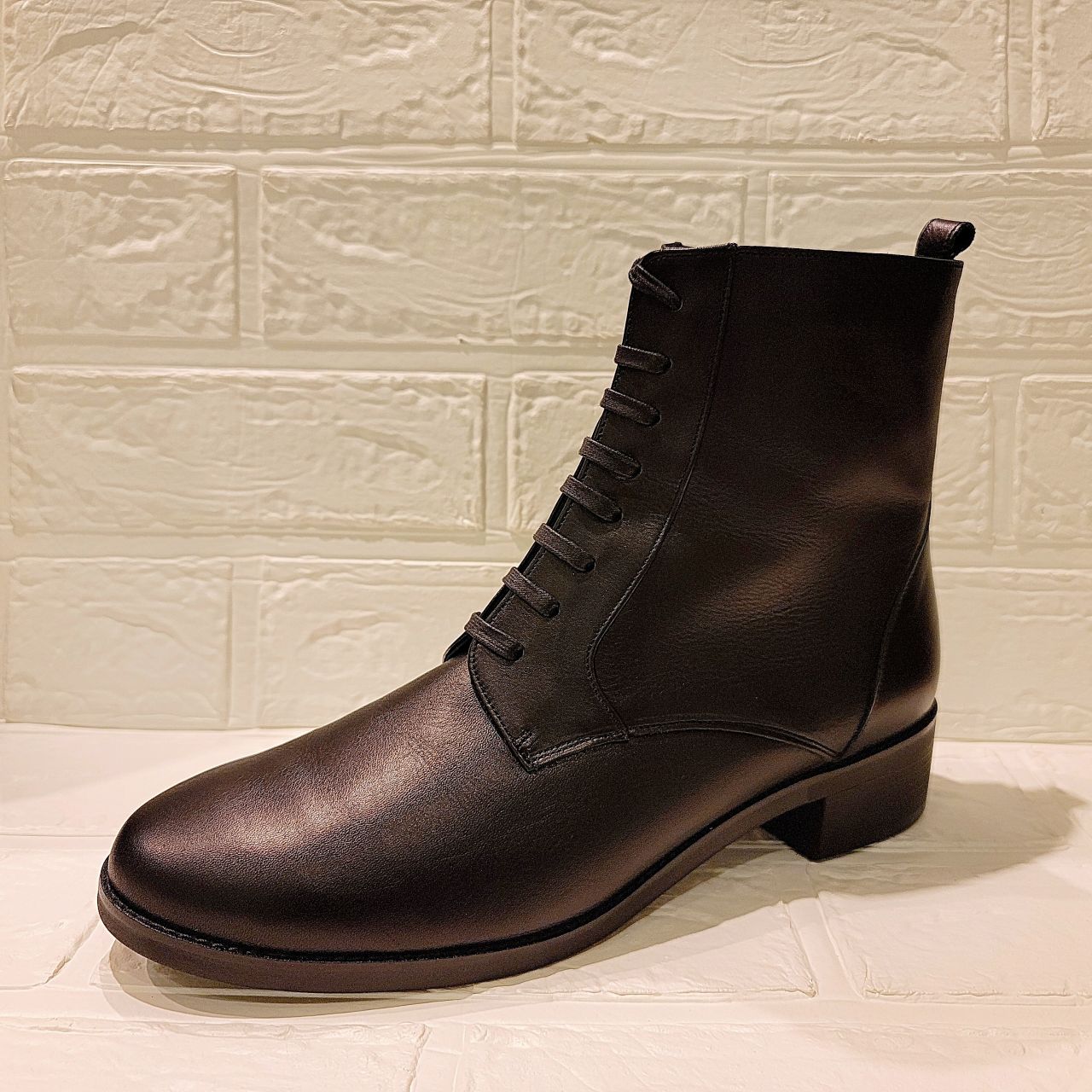 幅広いコーディネートにピッタリのシンプルなレースアップブーツです。
