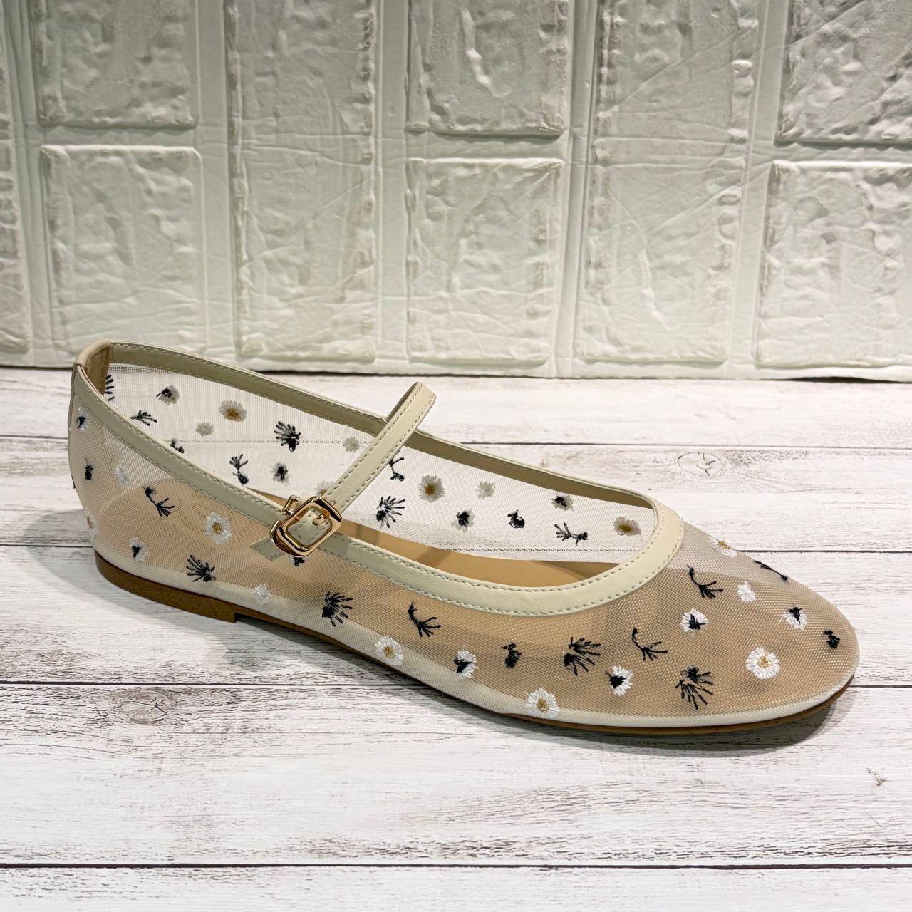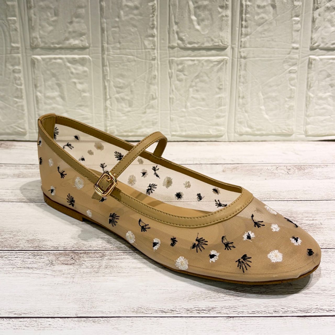 繊細な小花柄と華奢なストラップで可愛らしさと上品な雰囲気のフラットシューズです。