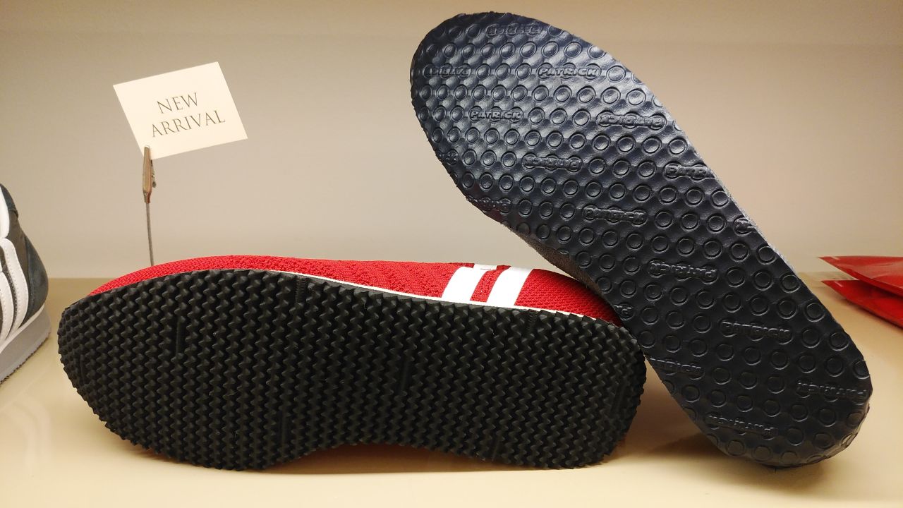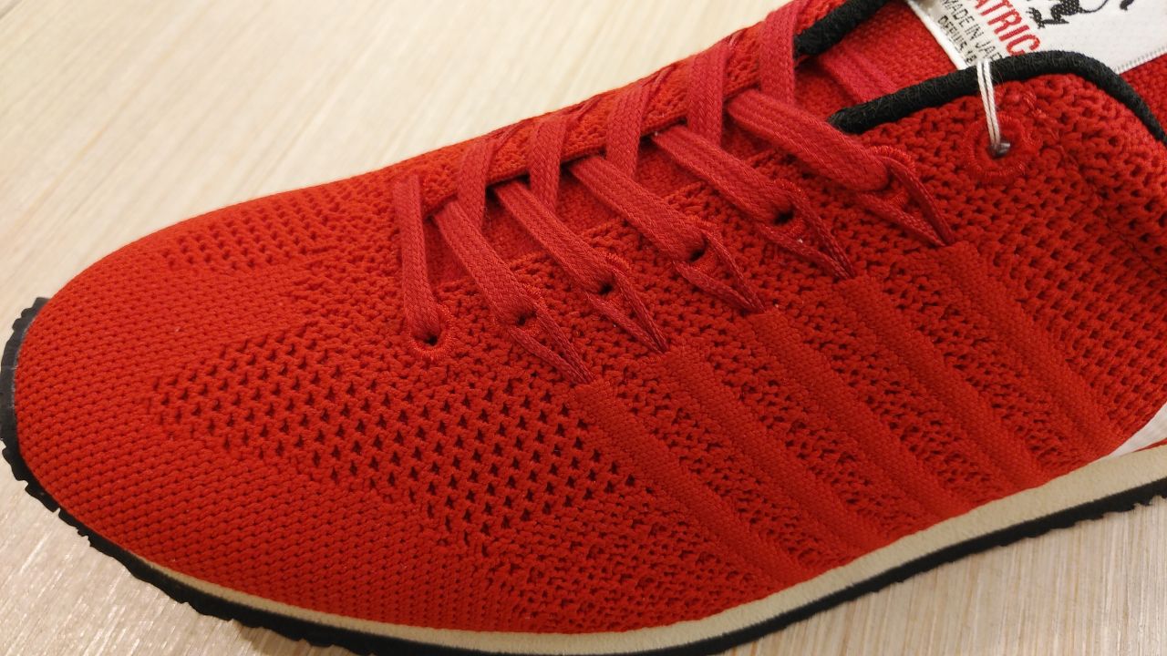 材質が、ポリエステルのニットです。通気性と軽量性に優れており今の時期にぴったりです。ニットが伸縮性があり、足にフィットします。