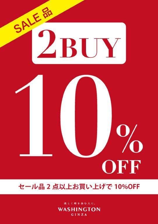 セール品2点以上のお買い上げで、レジにて更に10%OFFも開催中です!