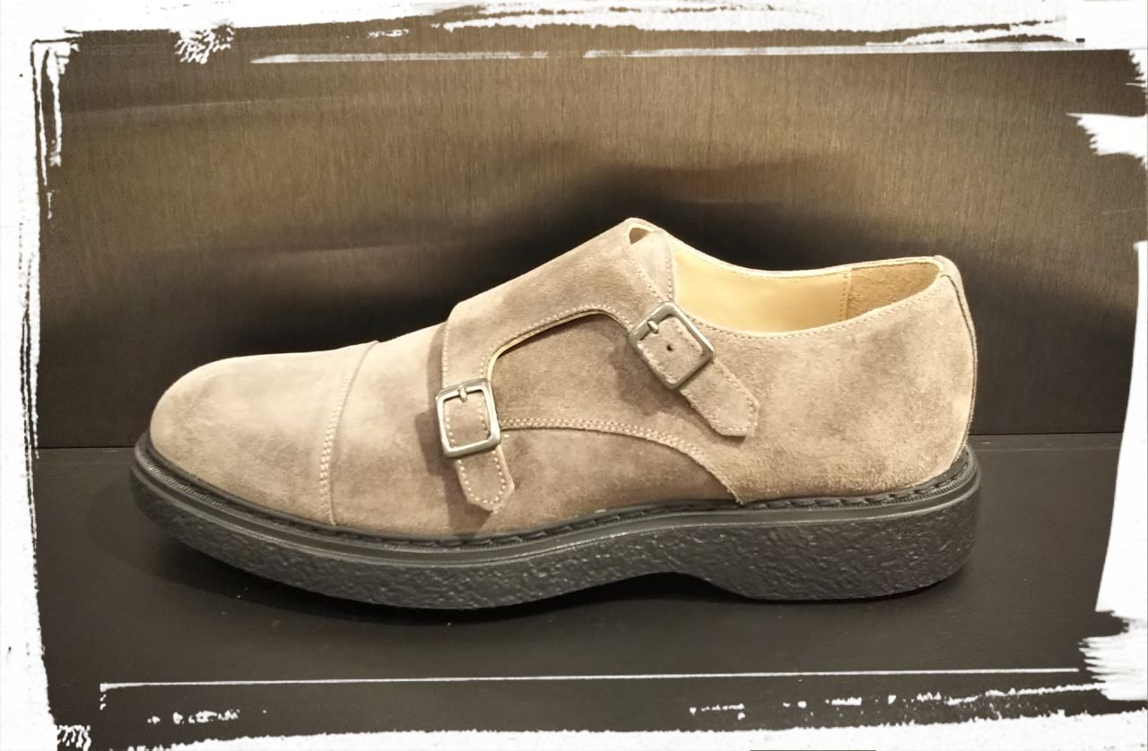 ダブルモンクのダークネイビー(上)、グレージュ(下)。