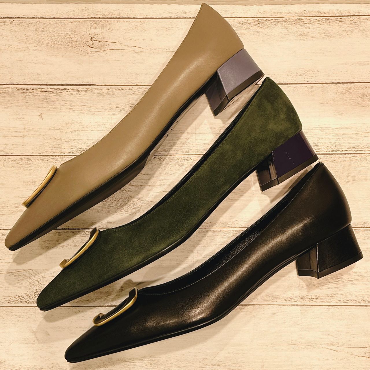 本日は、『FABIO RUSCONI PER WASHINGTON』よりスクエア飾りがポイントのパンプスをご紹介します。