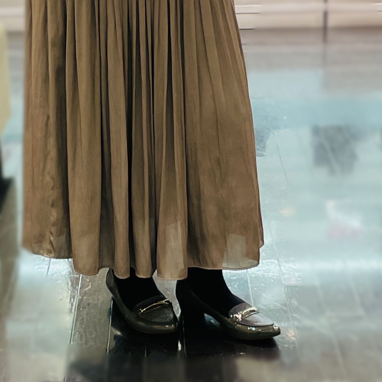 シンプルなローファーパンプスですので、オンオフ気兼ねなくお履きいただけますよ!