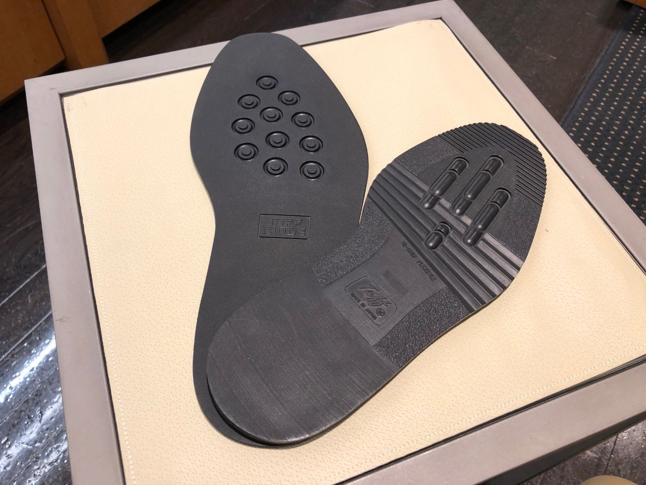 ゴム底でお作り頂き、防水スプレーの使用をお勧め