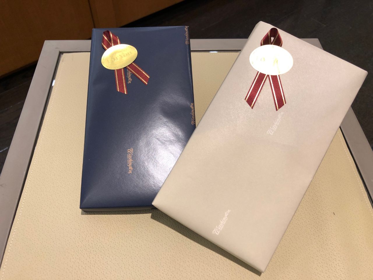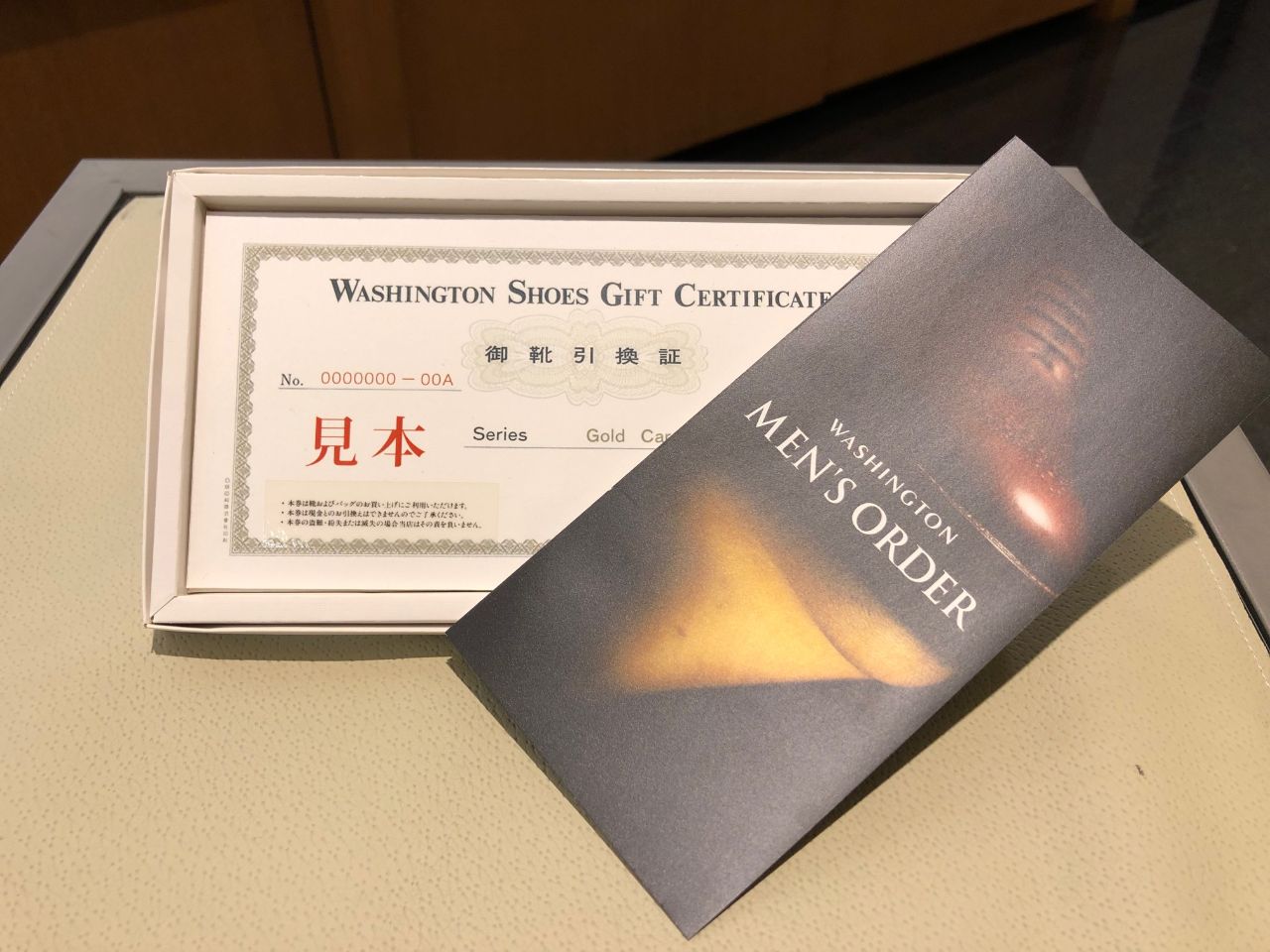 箱の中にオーダーシューズのカタログを一緒に 入れてラッピングいたします。
