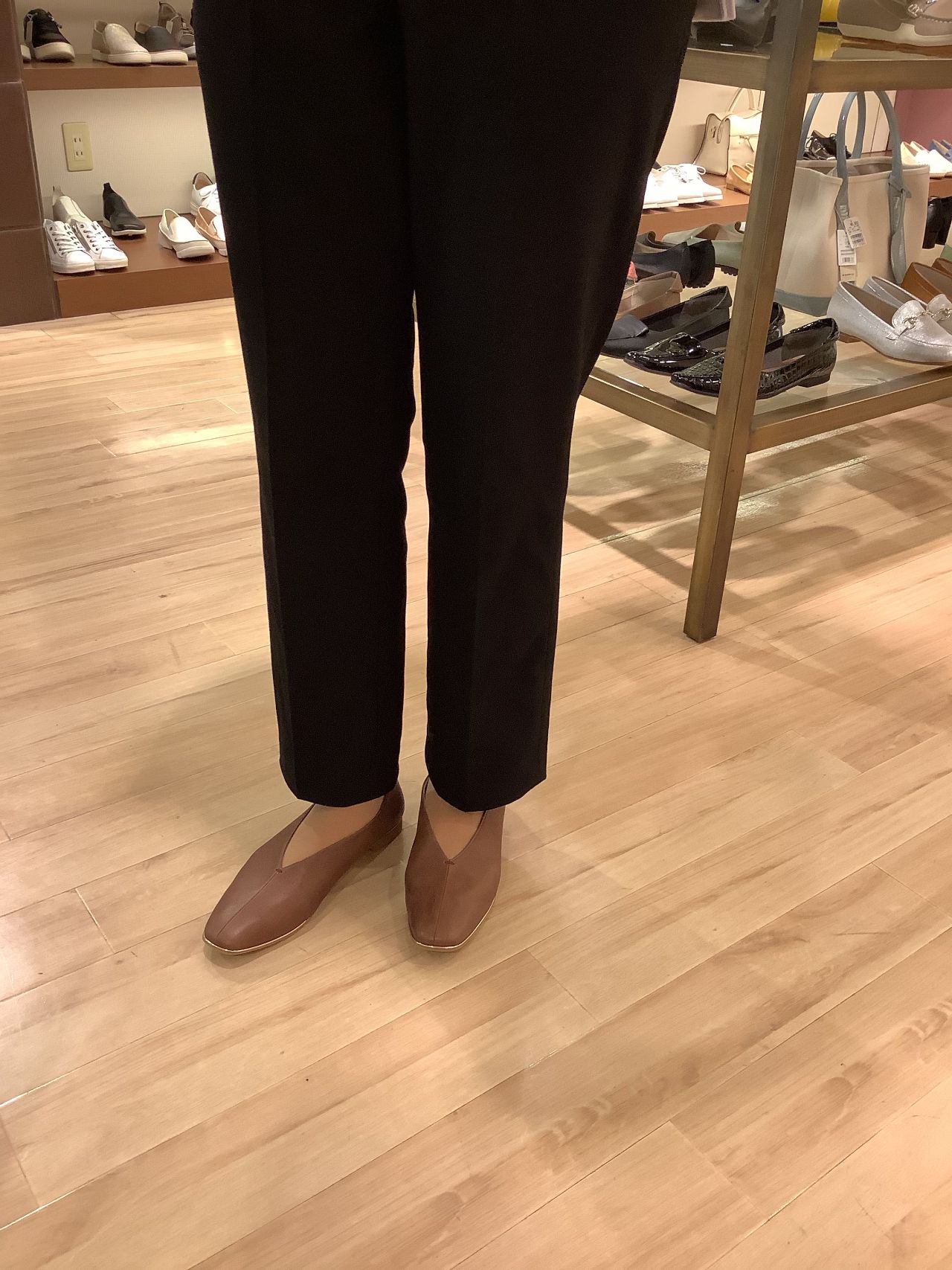 フラットシューズですが、履き口のVカットが足をすっきり見せてくれます。