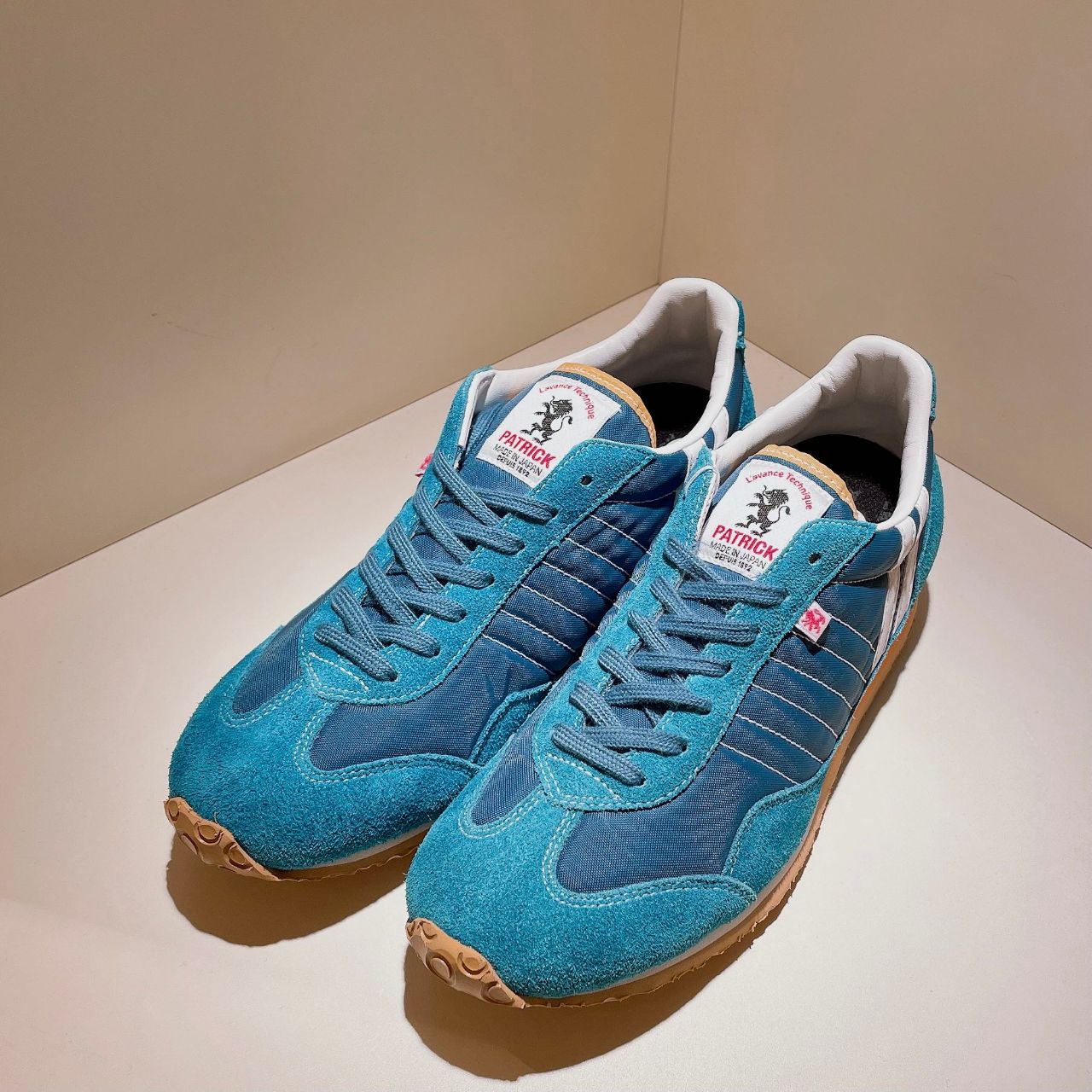 アッパーは深い青に、ターコイズカラーのベロアとなってます。