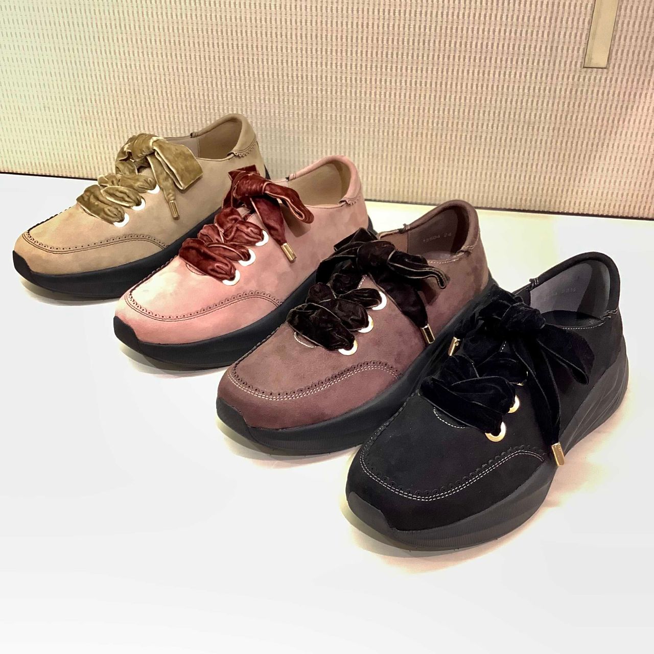 ダブリューの秋冬新作として、ベロア素材の柔らかな雰囲気のリボンがついたフェミニンで可愛いスニーカーが登場しました♡