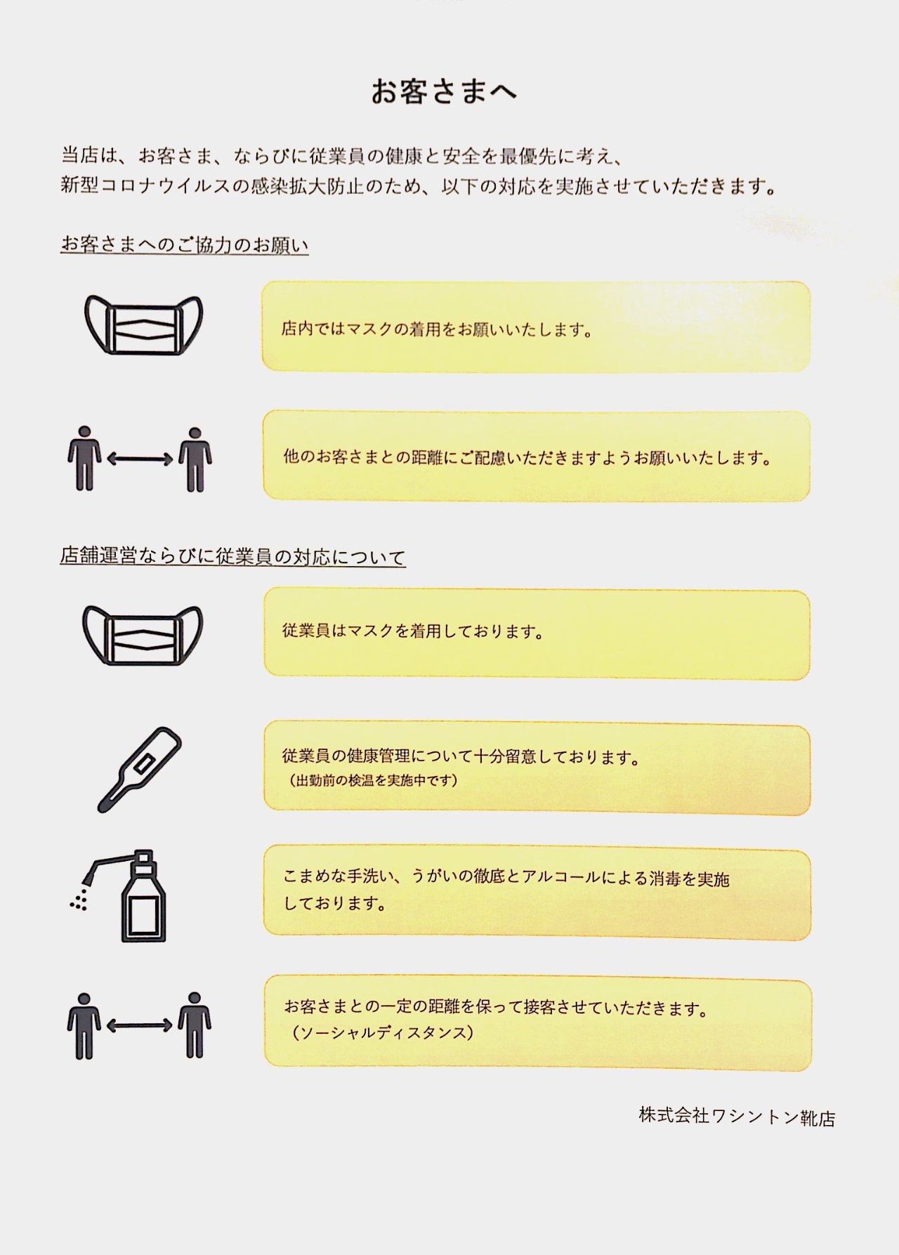 感染拡大防止のため、以下の対応を実施させていただきます。
