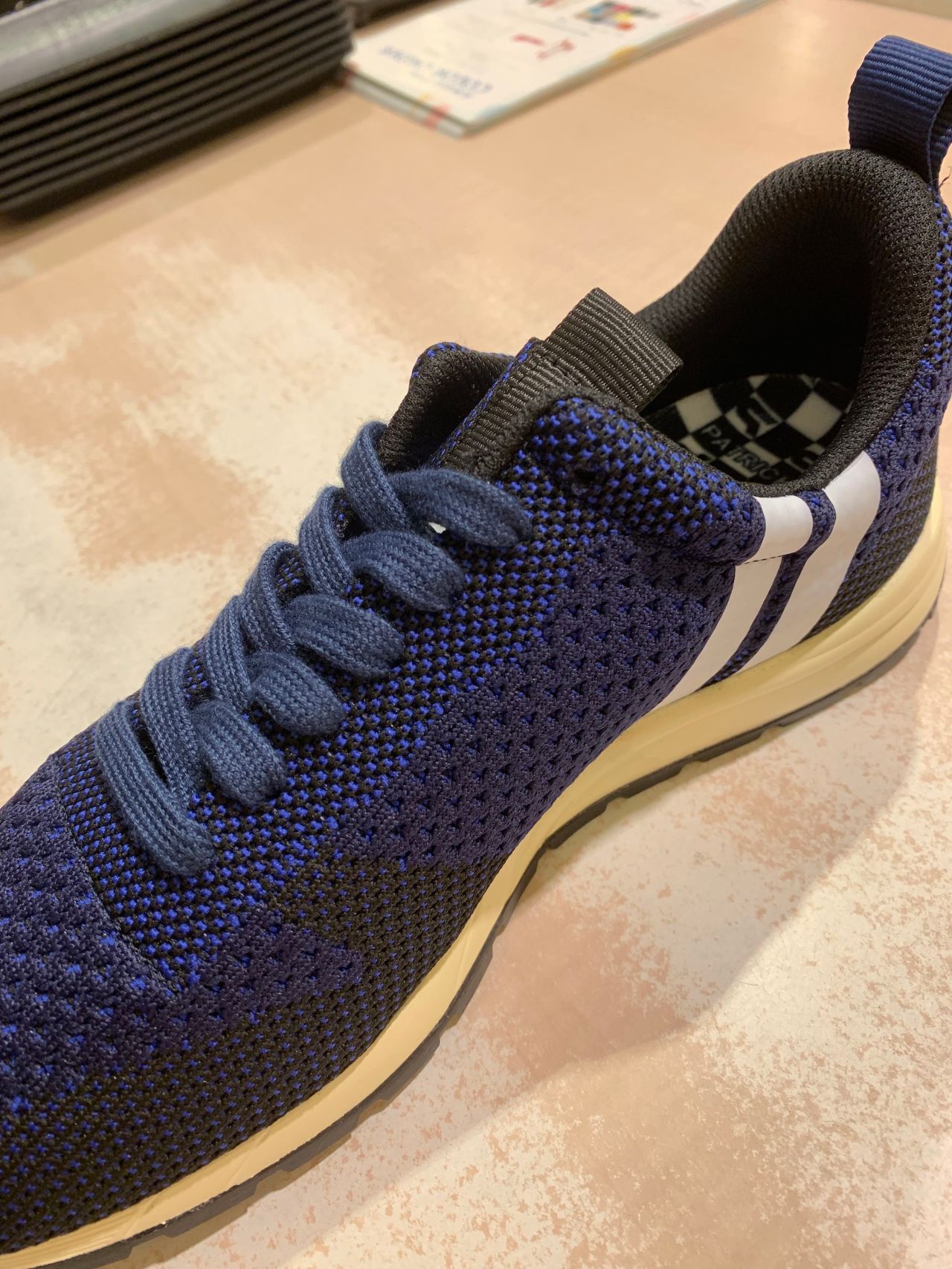 こちらのスニーカー、ニット素材を採用しており