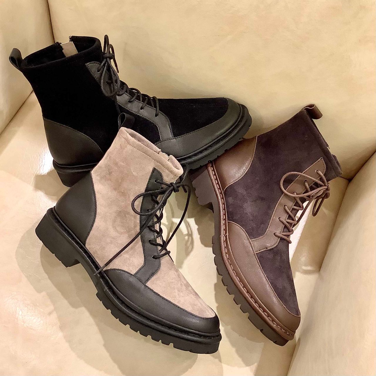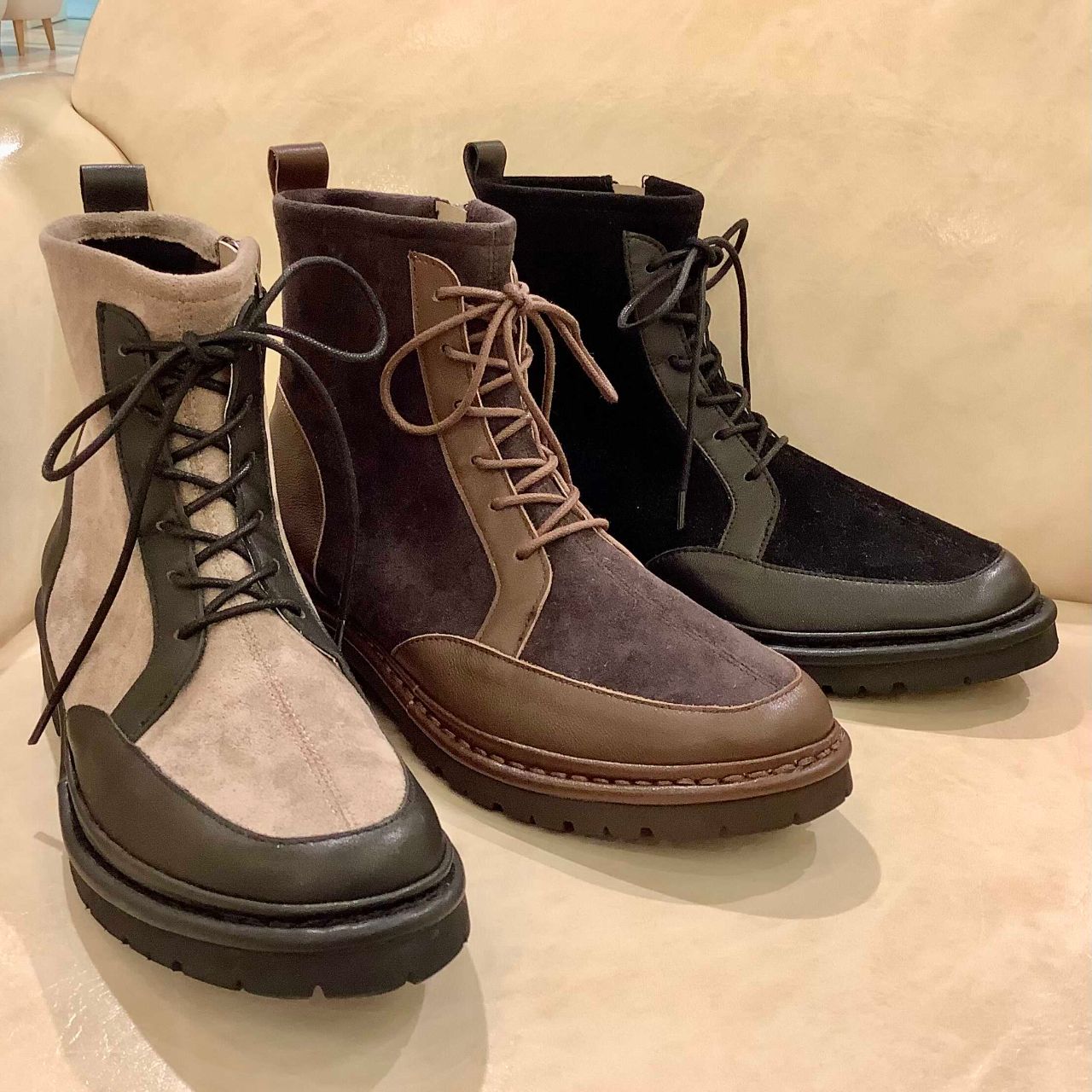 ハードなデザインですが、スエード調の素材によって柔らかい雰囲気に見せてくれます。