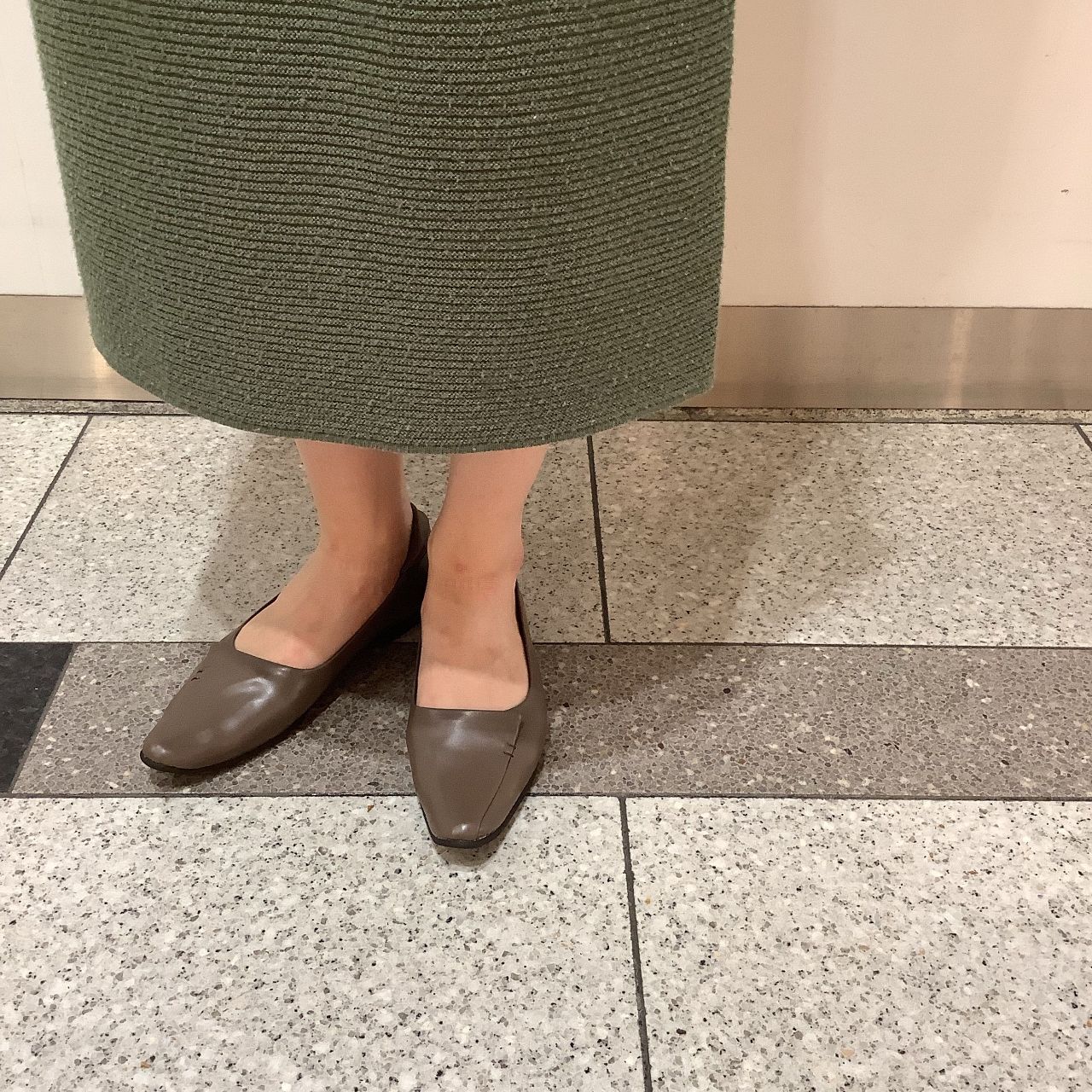 ヒールがなくても足元をすっきりキレイに魅せてくれるシルエットが人気です。