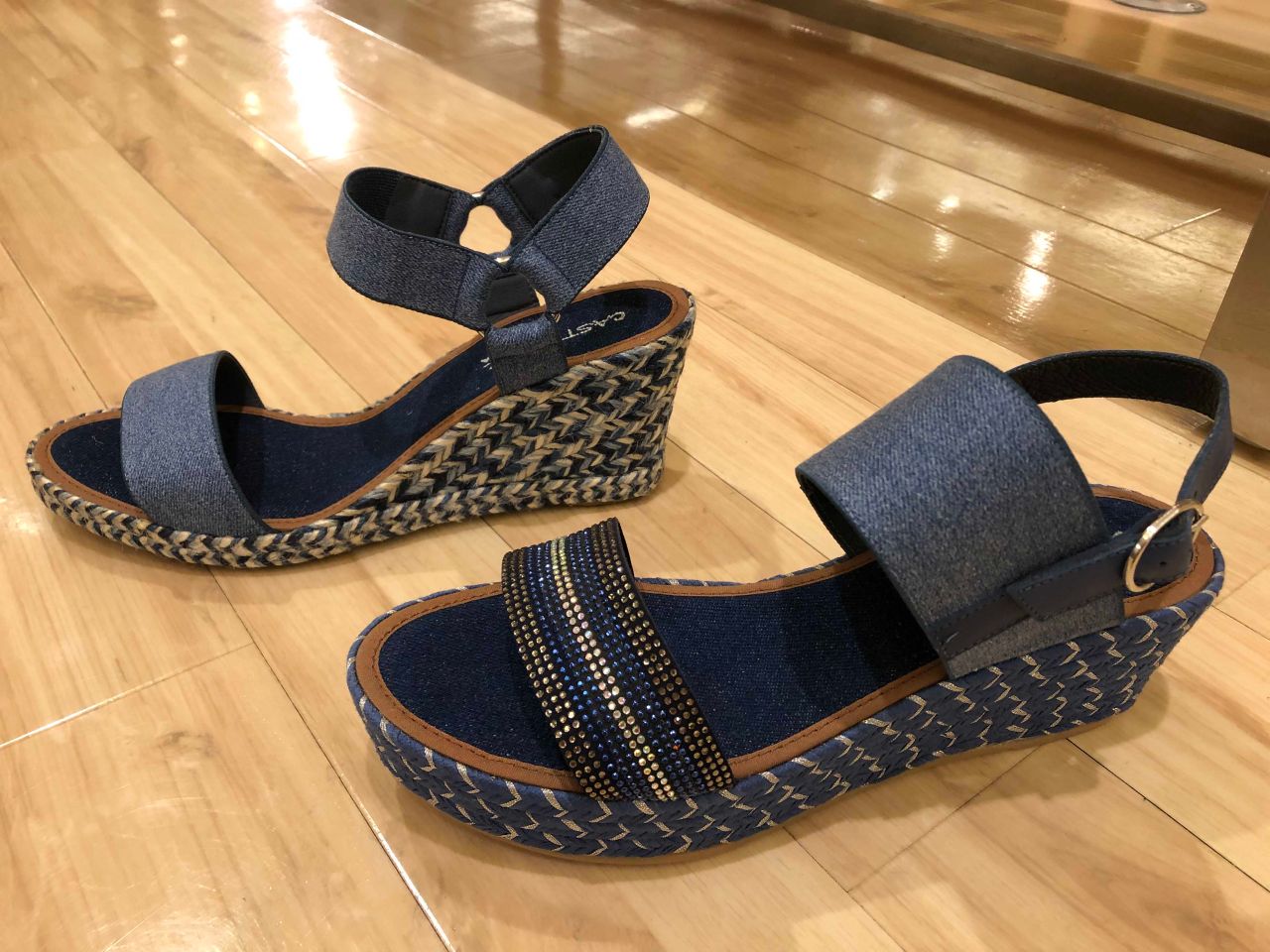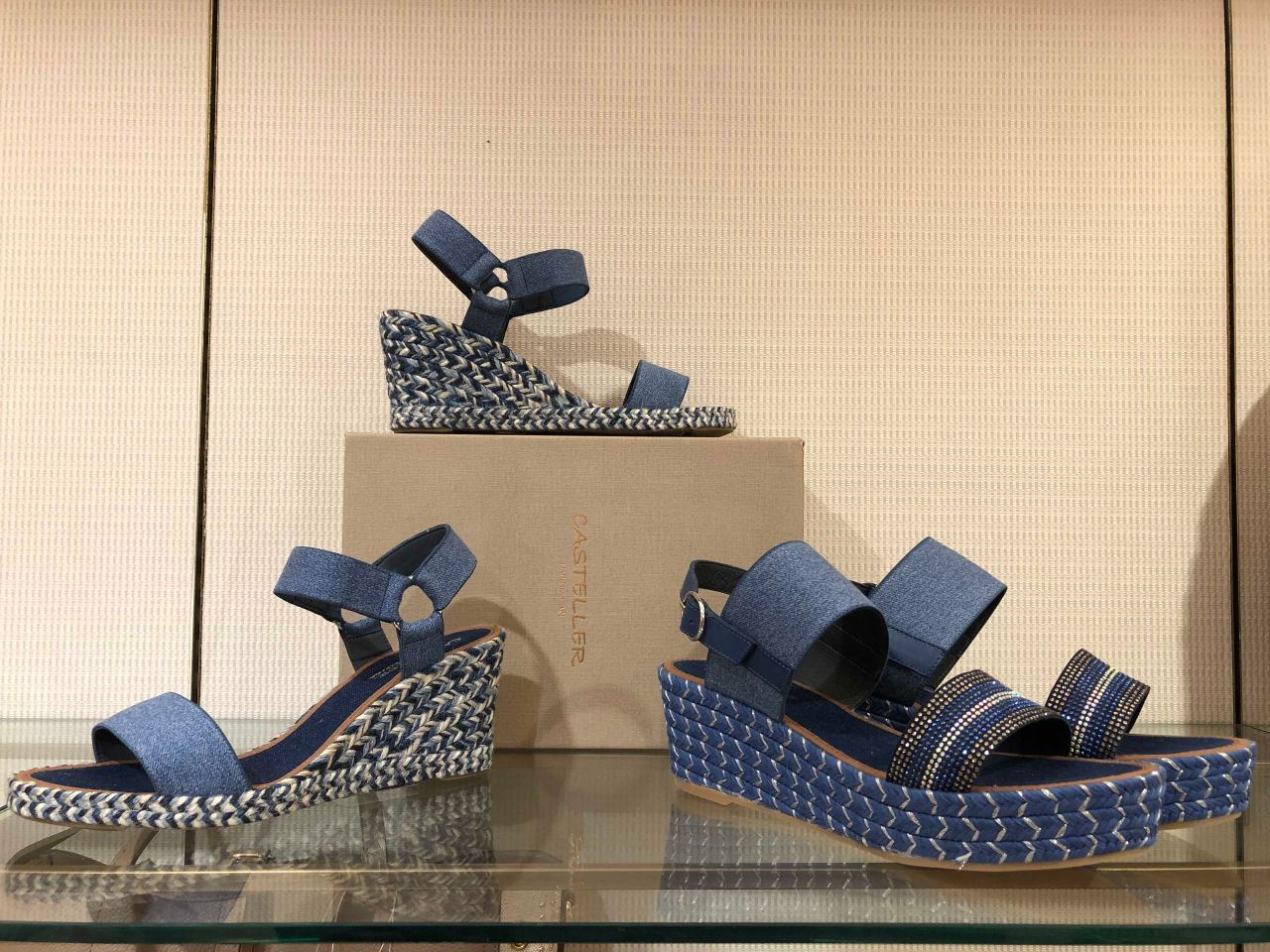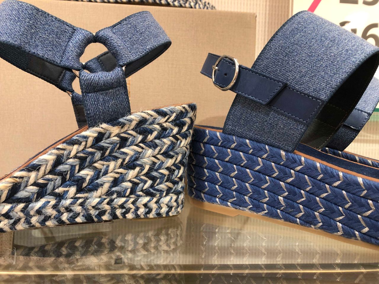 デニム素材と、ウェッジソールのブルーが目を惹きます!
