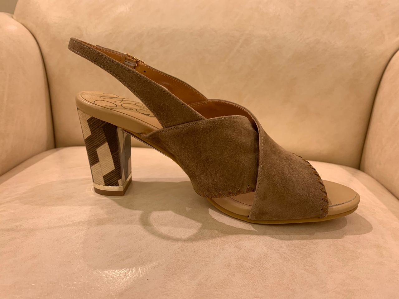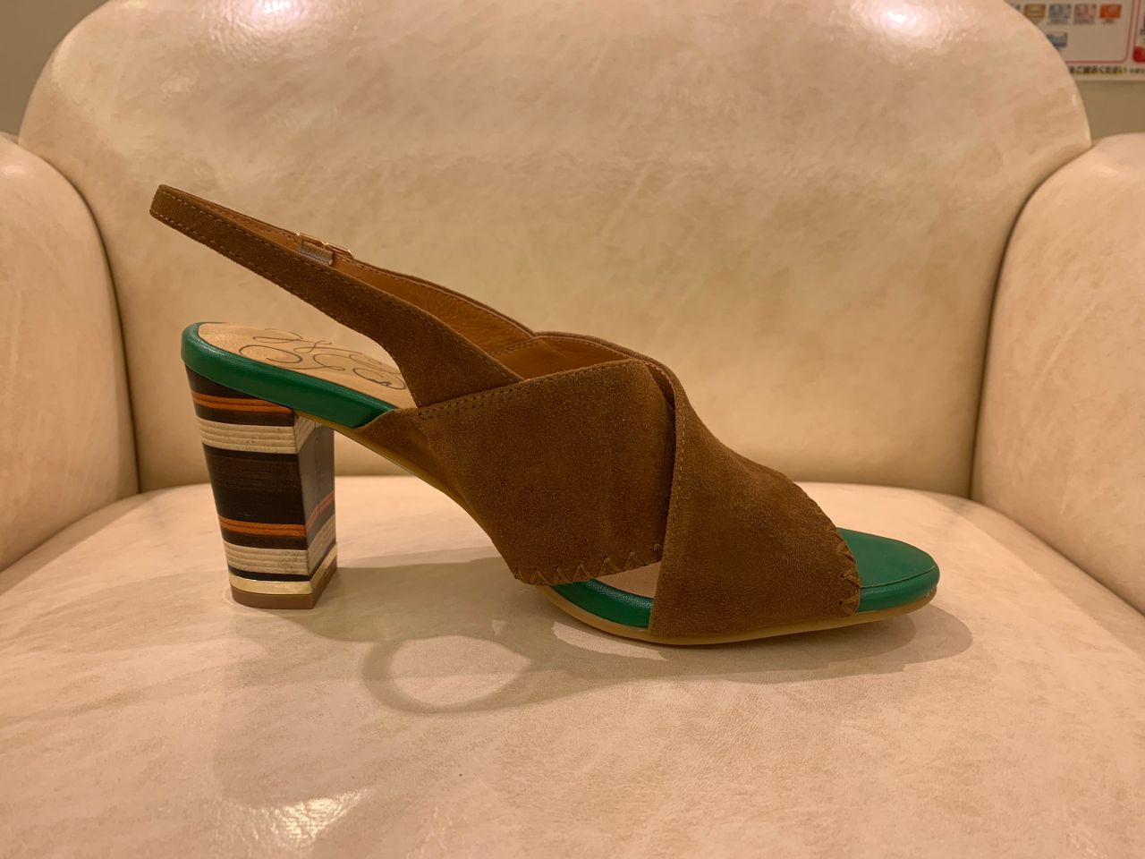 ゴールドのヒール金具もスタックヒールにピッタリあいます。
