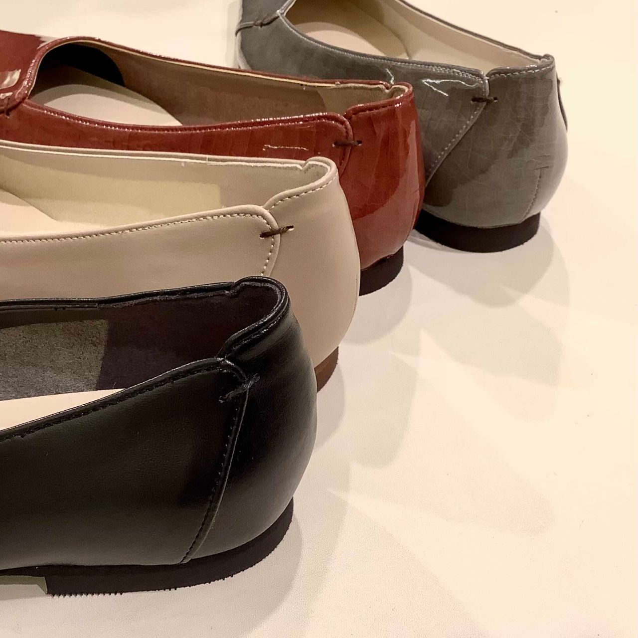 以前と変わらず、甲が深すぎないので足指も見えなくてオンオフ兼用で履いていただけます!