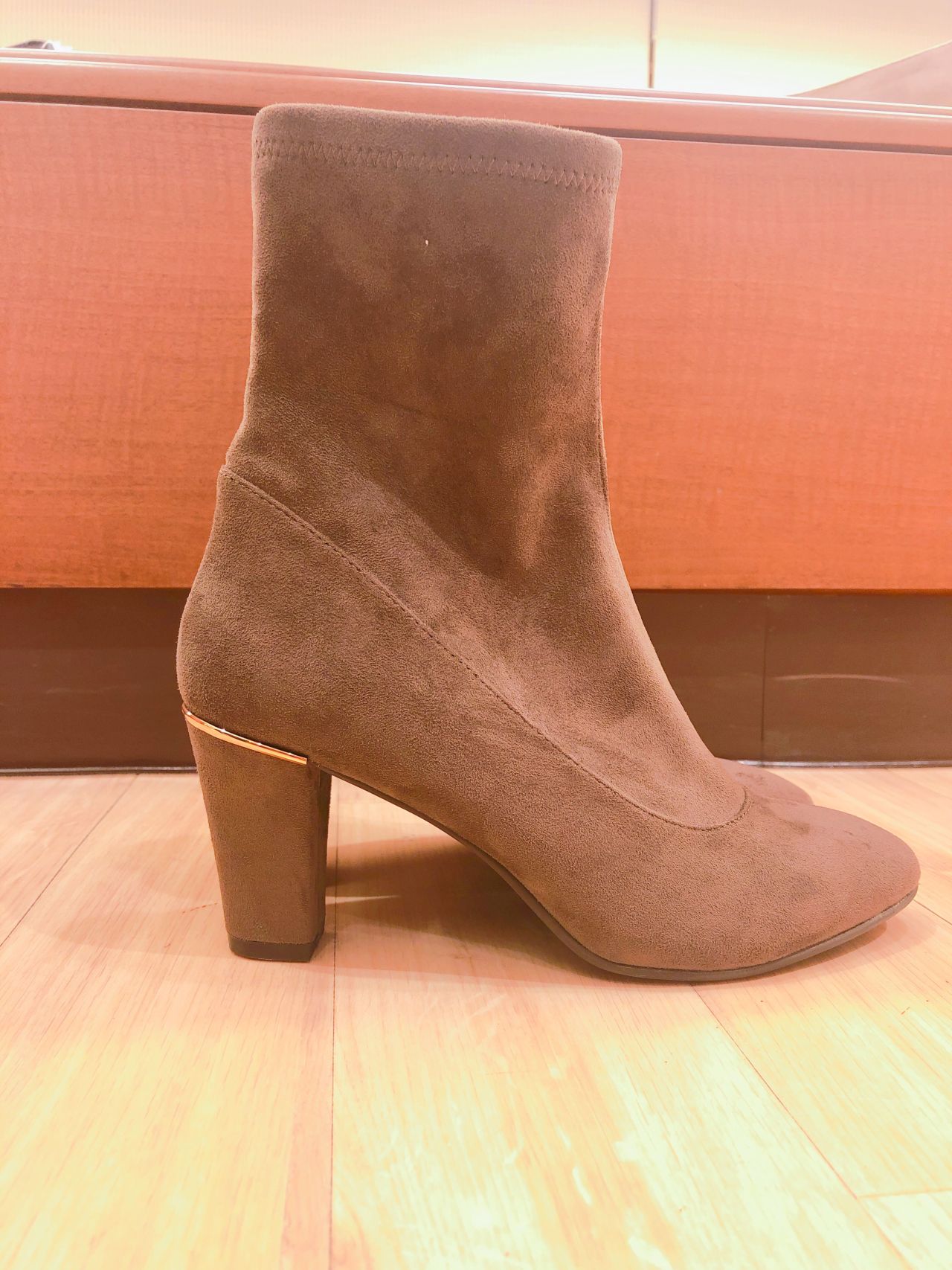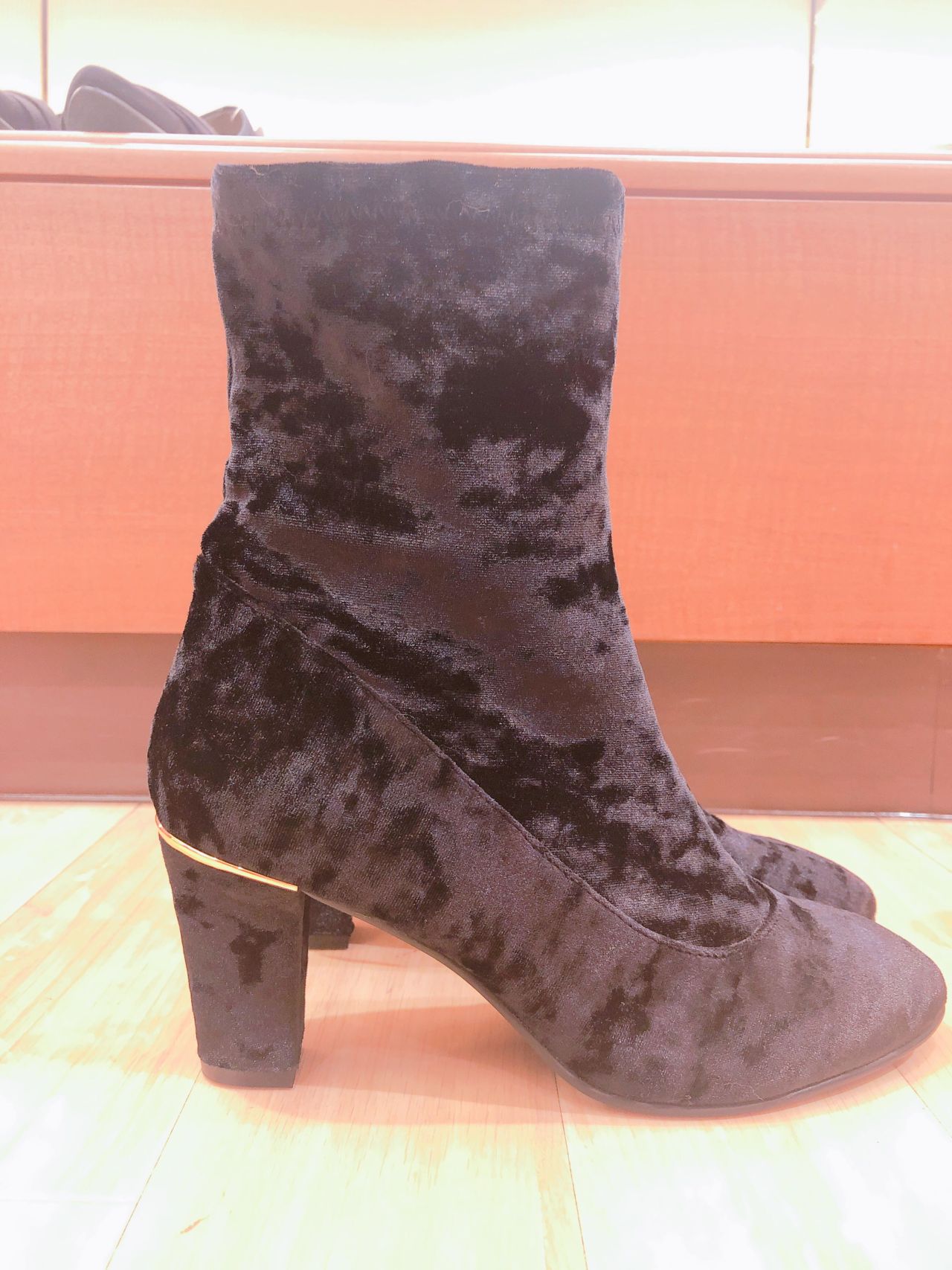 ヒールについたアクセントがお洒落なこちらのブーツ。