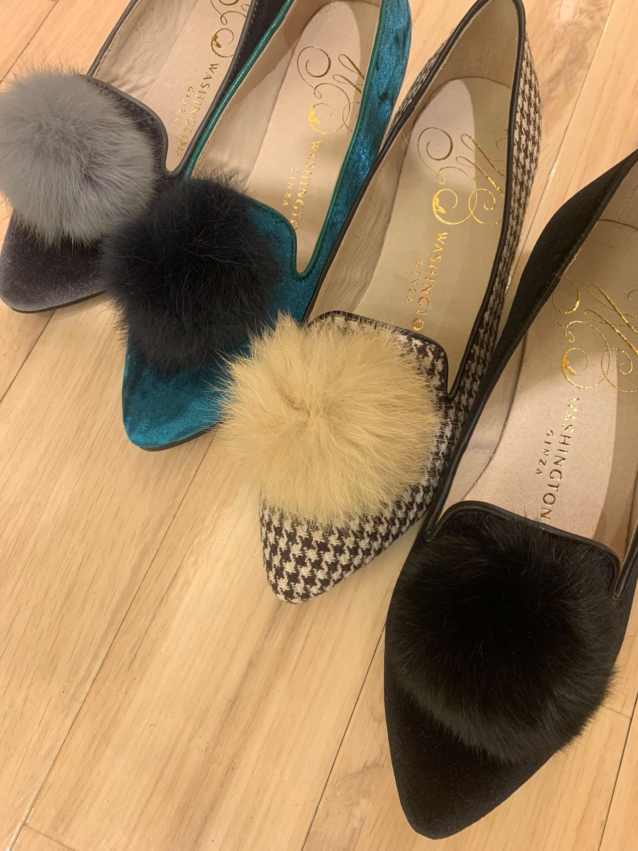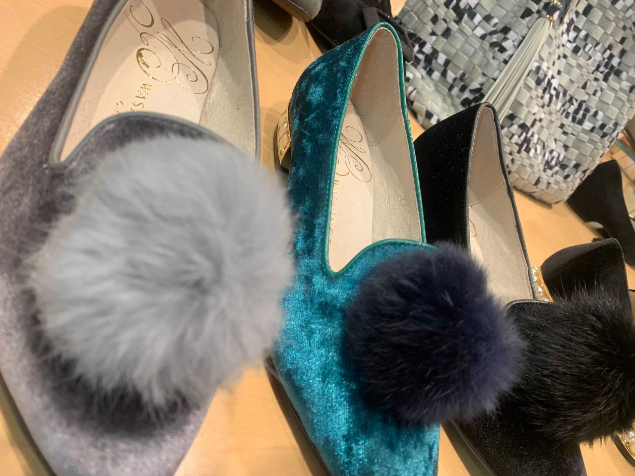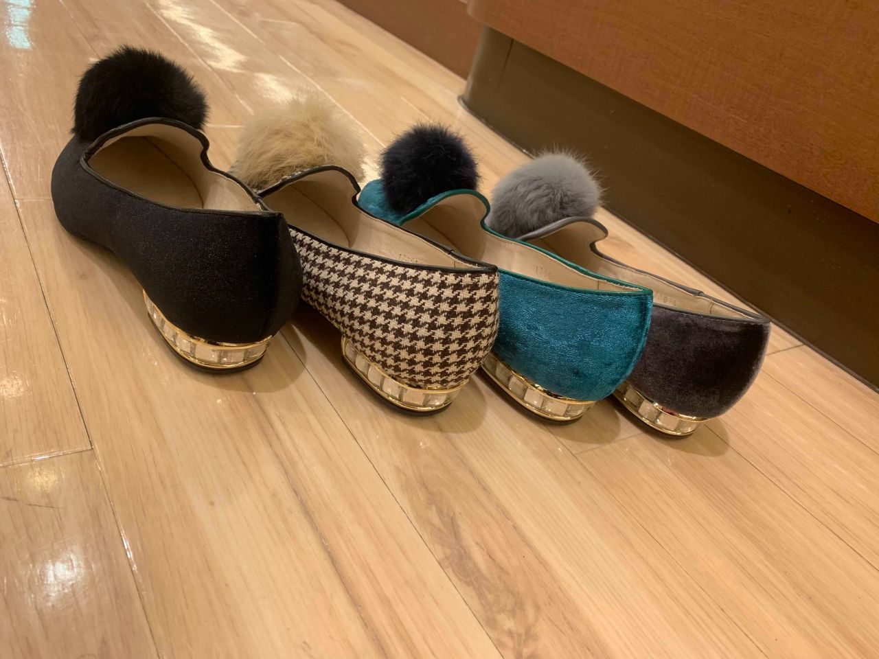 ファー付きで、ヒールがキラキラビジュー付きです。