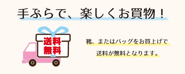 また、時節柄お持ち帰りのご負担を無くし、手ぶらでお買物を楽しんでいただけますよう、 靴・バッグをお買い求めの際、送料を無料とさせていただきます。