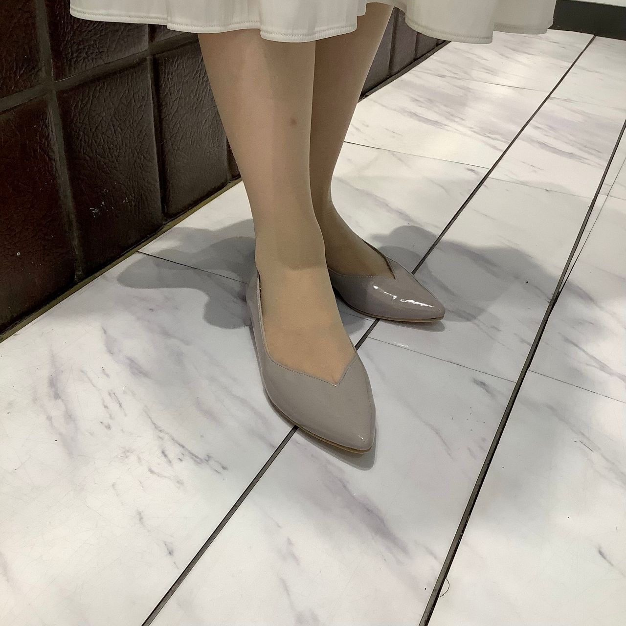 Vカットなのでフラットシューズですがお足がきれいに見えます。