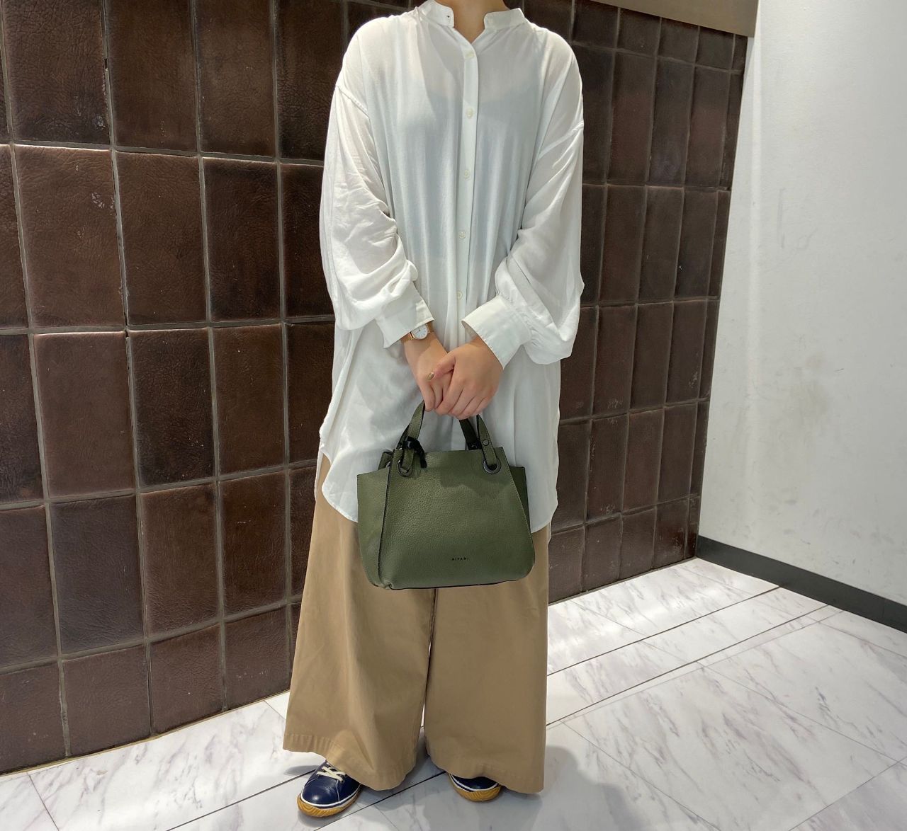 シボ加工を施した柔らかいレザーで、馴染みの良さが抜群です。マチがしっかりとあり、長財布やポーチなども収納出来ます◎