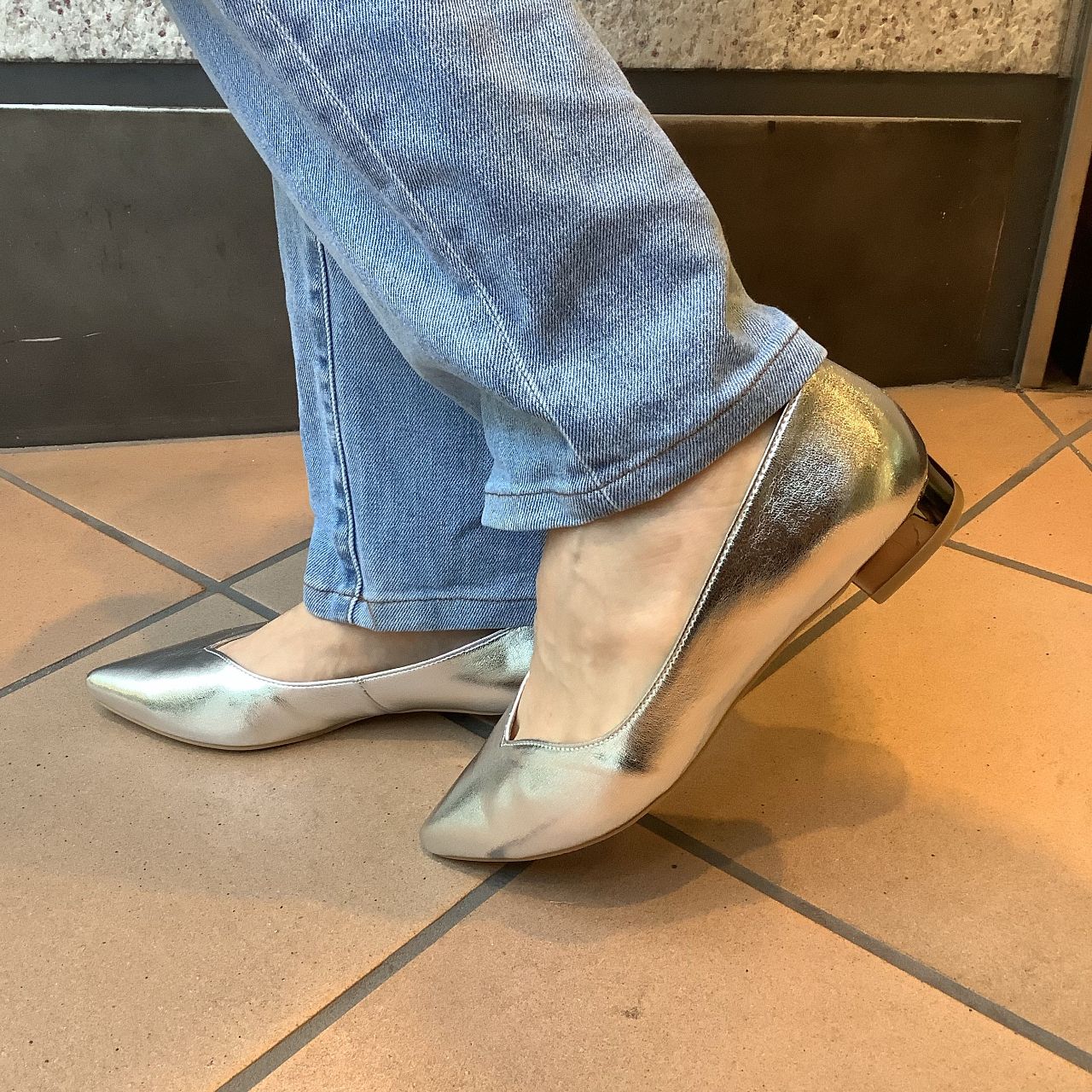 フラットですがつま先がポインテッドトゥになっているのでカジュアルにならず、
