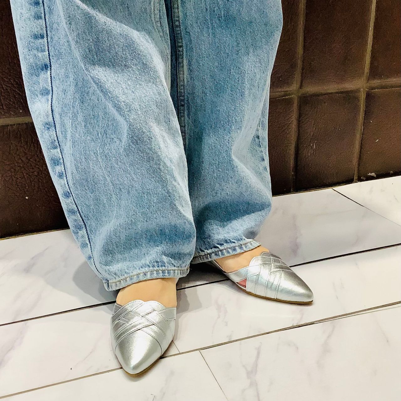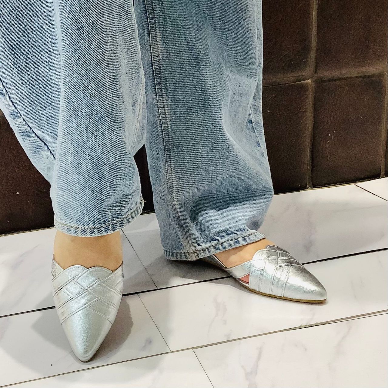 編み込みデザインのフラットパンプス