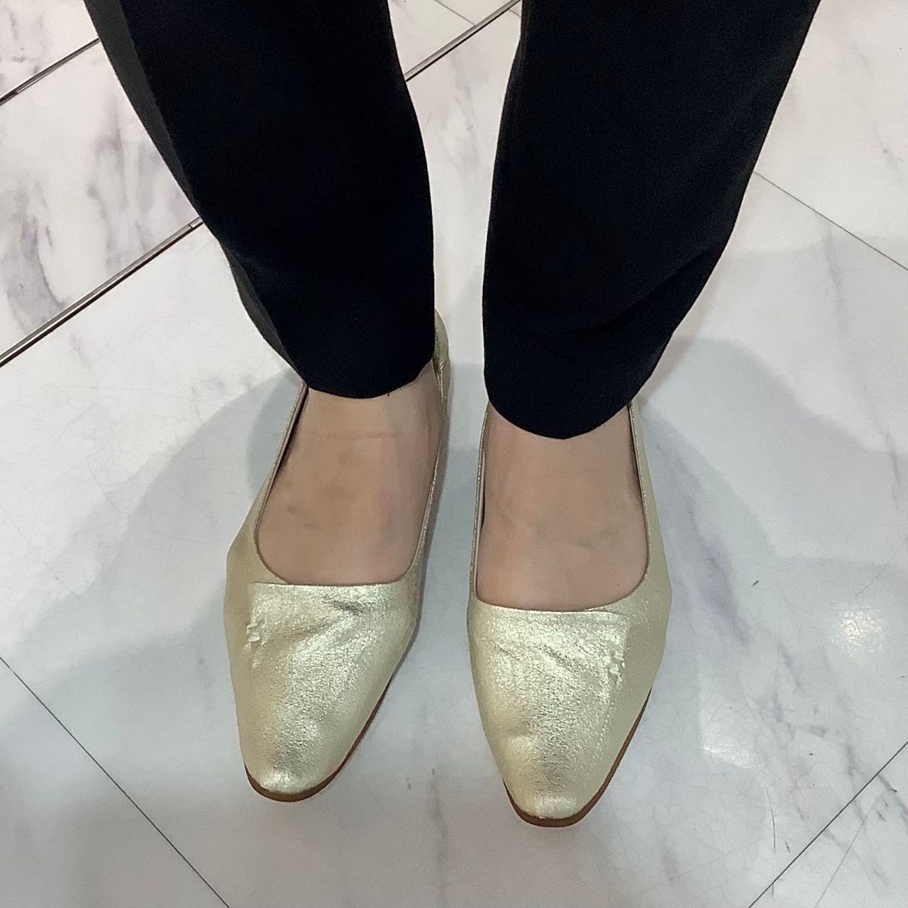 定番フラットパンプスに新色ライトゴールドが登場です☆
