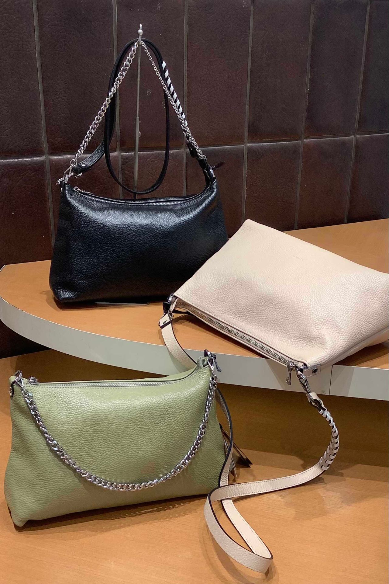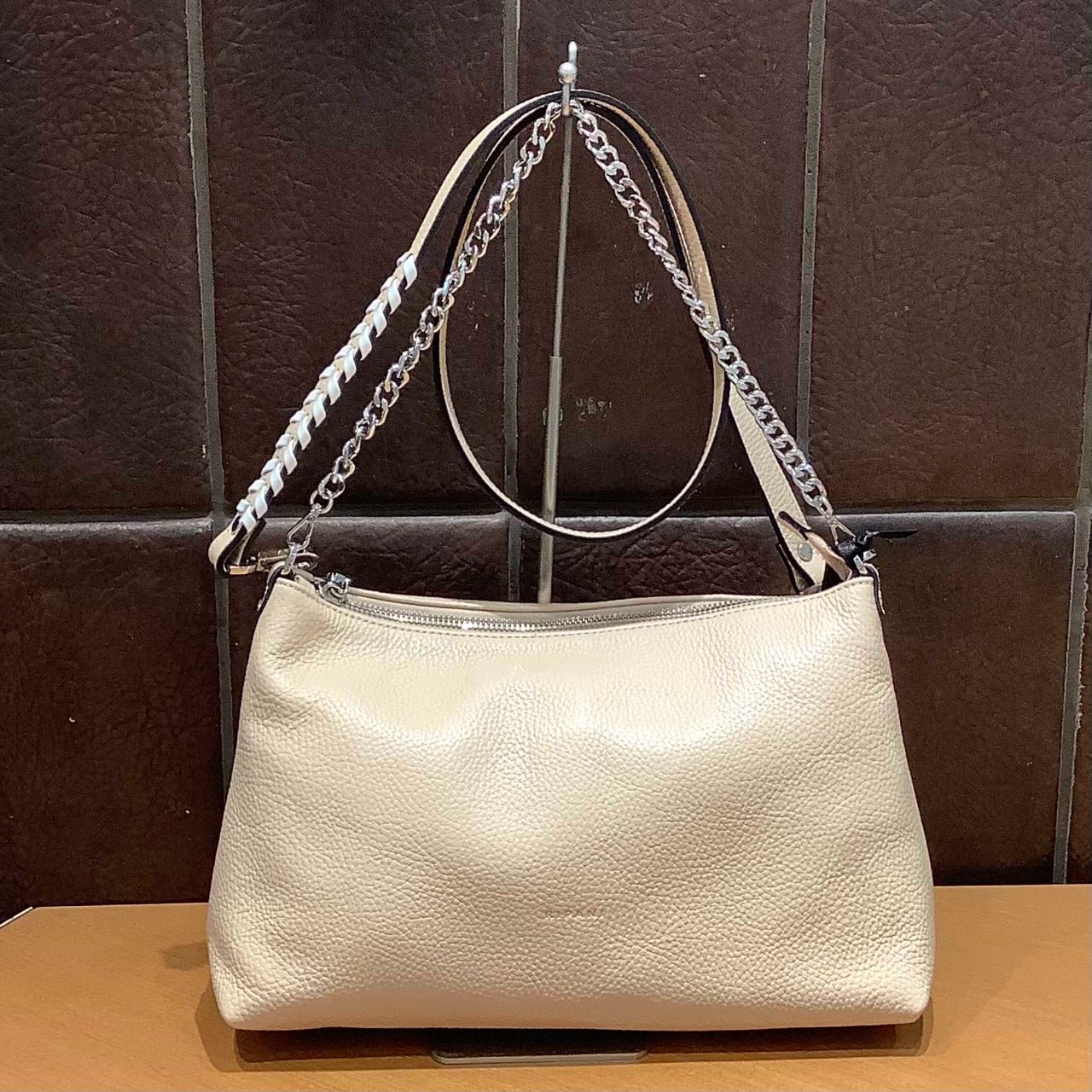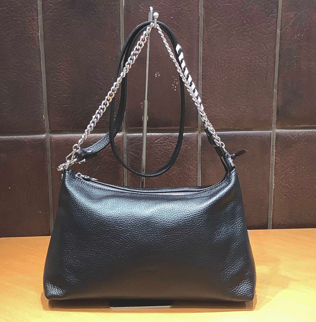 肩からかけてもチェーンを腕にかけても