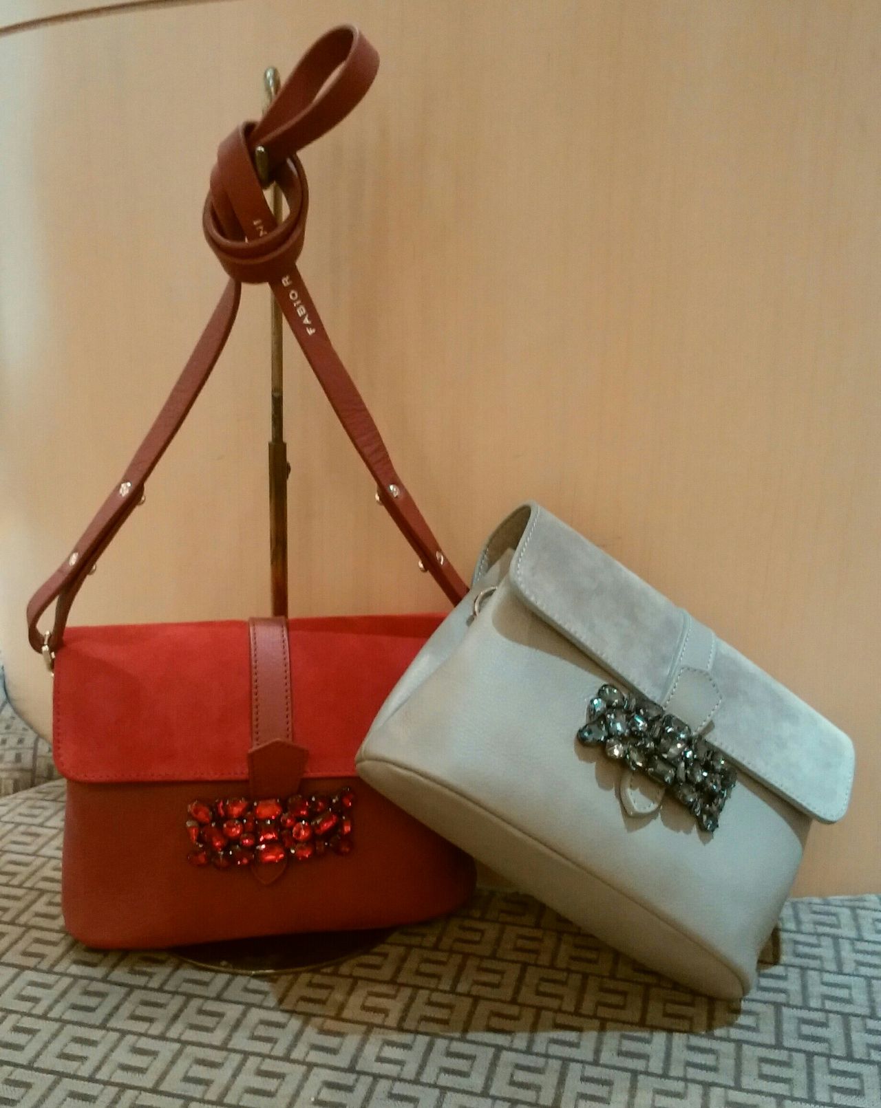 弊社創業85周年記念に、大人気のパンプス(こちらのブログでは9/3(月)にご紹介しました♬)とアンサンブルでとファビオ・ルスコーニ氏が考案してくださったバッグです★
