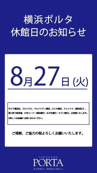※横浜ポルタ店は8月27日(火)は休館日となります。