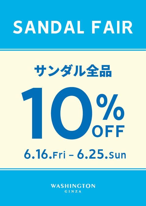 期間中サンダルは、レジにて10%OFFになります。