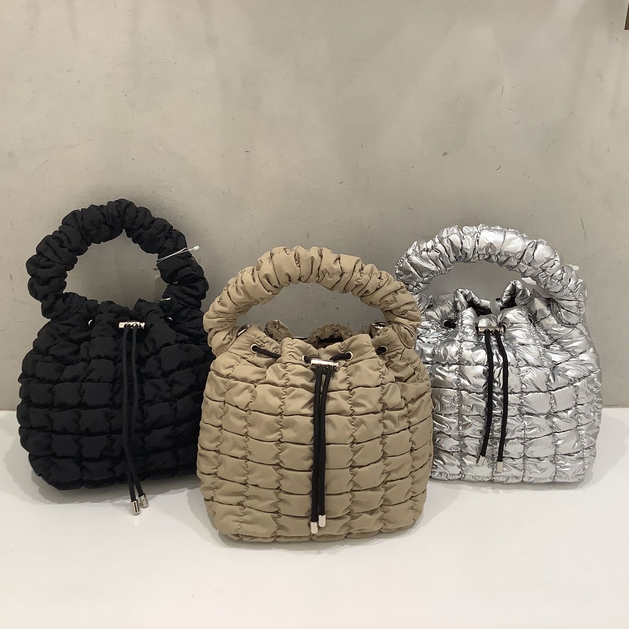ギャザーハンドルとキルティングが可愛いミニバッグ。ショルダーが2way仕様になっているため、着用シーンやコーデに合わせていただけます◎
