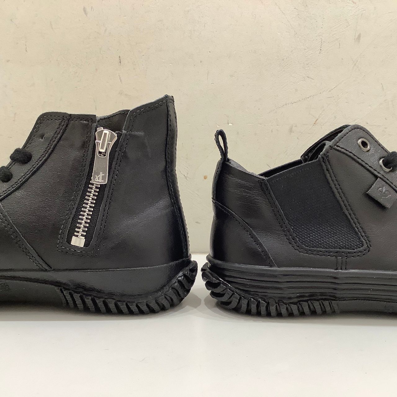 ハイカットモデルはファスナー・ミドルカットはゴムが入っていて脱ぎ履きがラクなんです♪