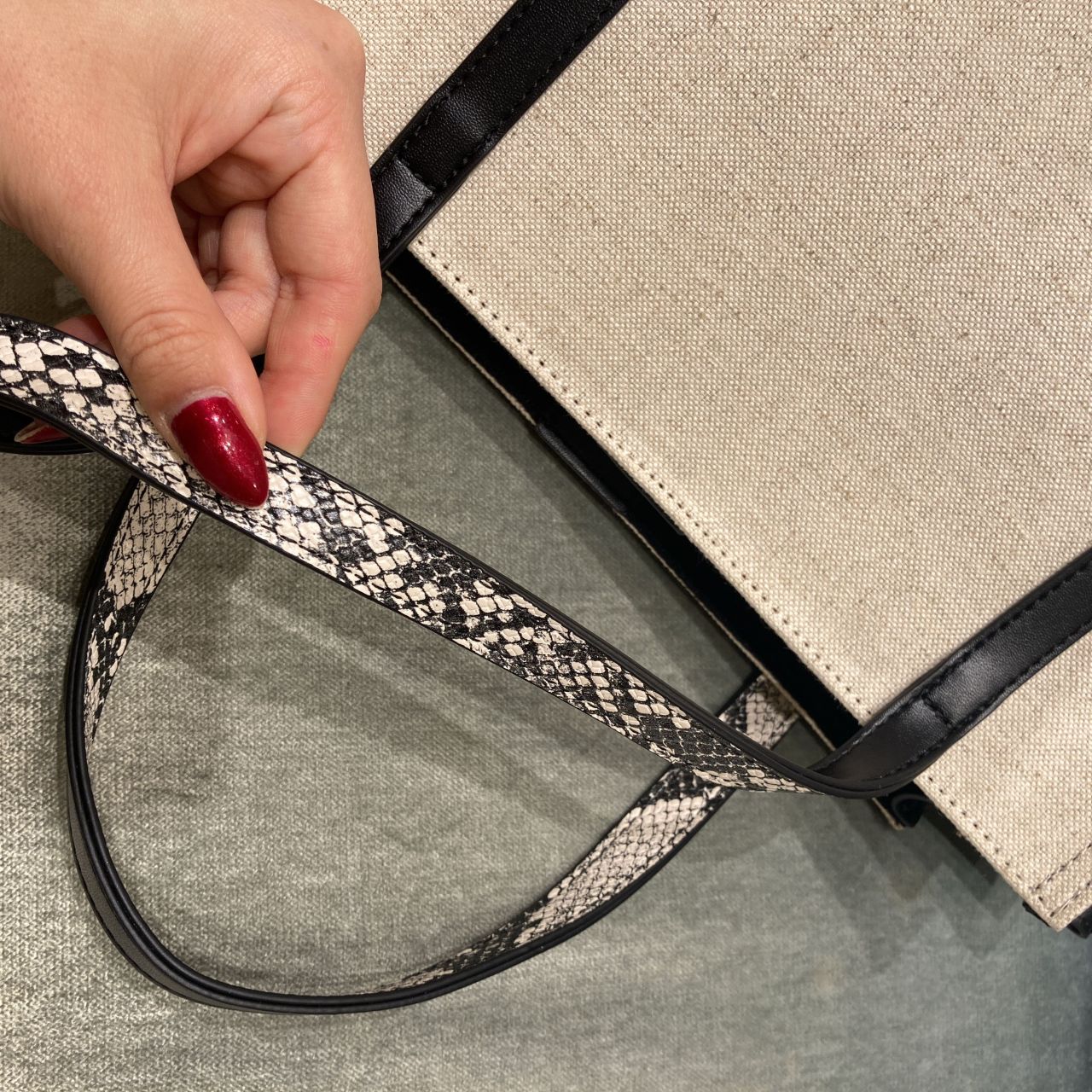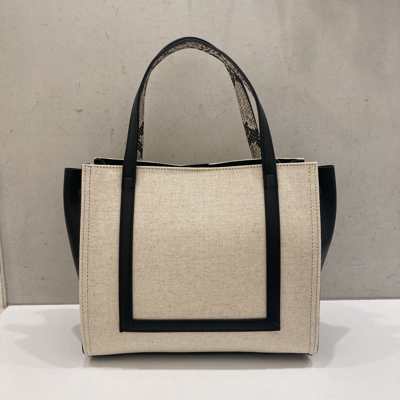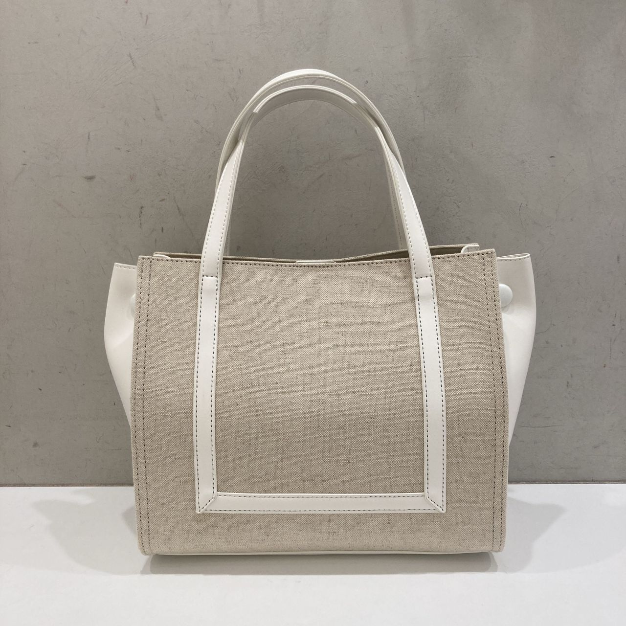 キャンバス地×エコレザーでカジュアル過ぎず、大人キレイな雰囲気に仕上がっております!